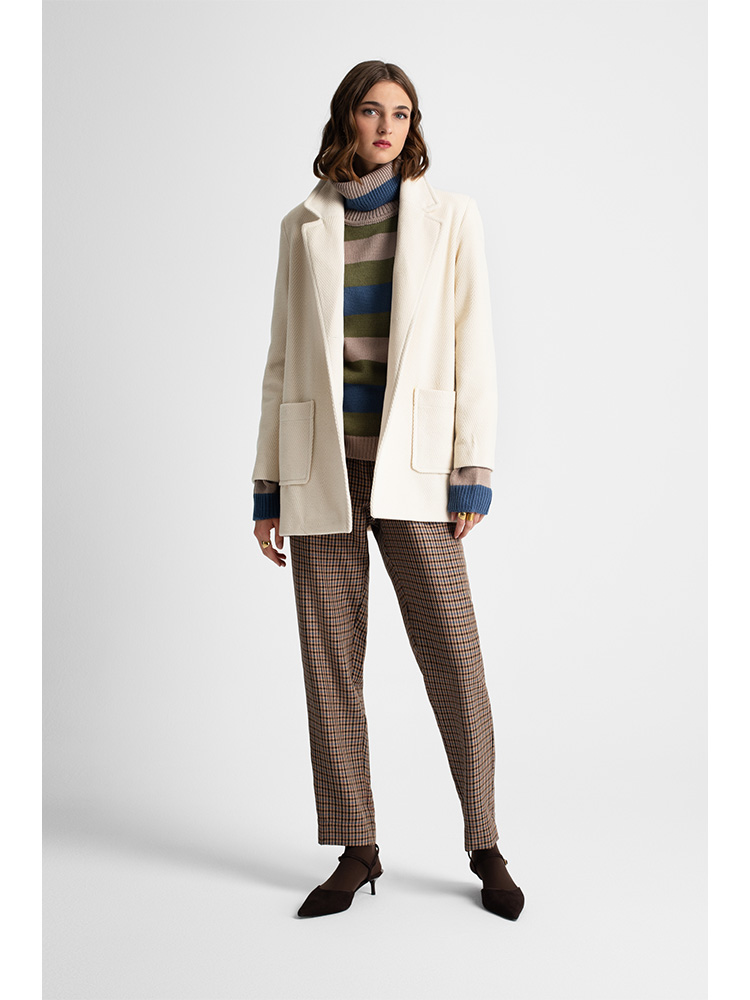 Classic tailored coat with notched lapel collar and front patch pockets. Crafted from a textured fabric that adds subtle depth, it?s designed to complement both casual and sophisticated looks.