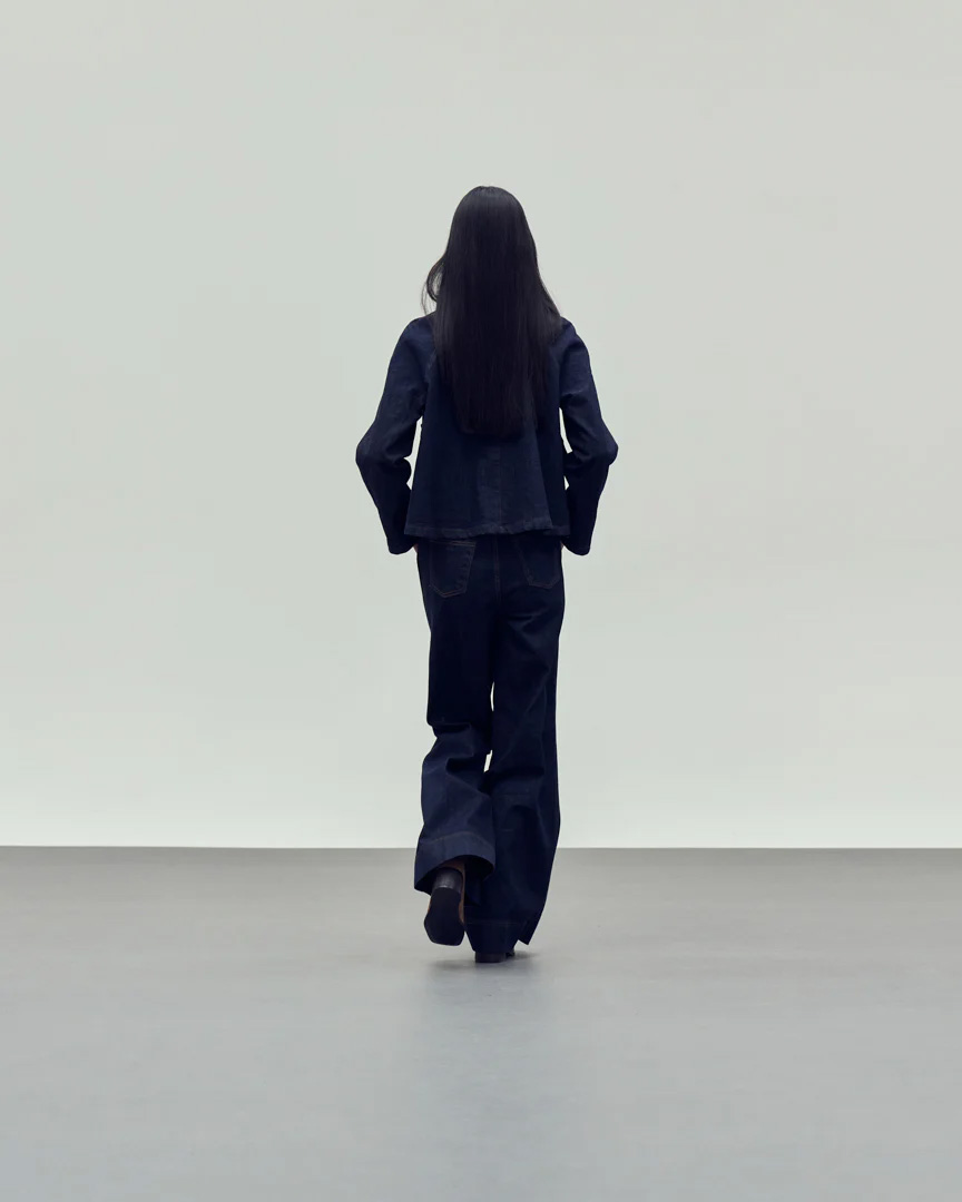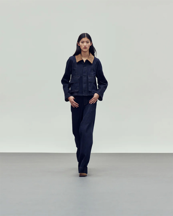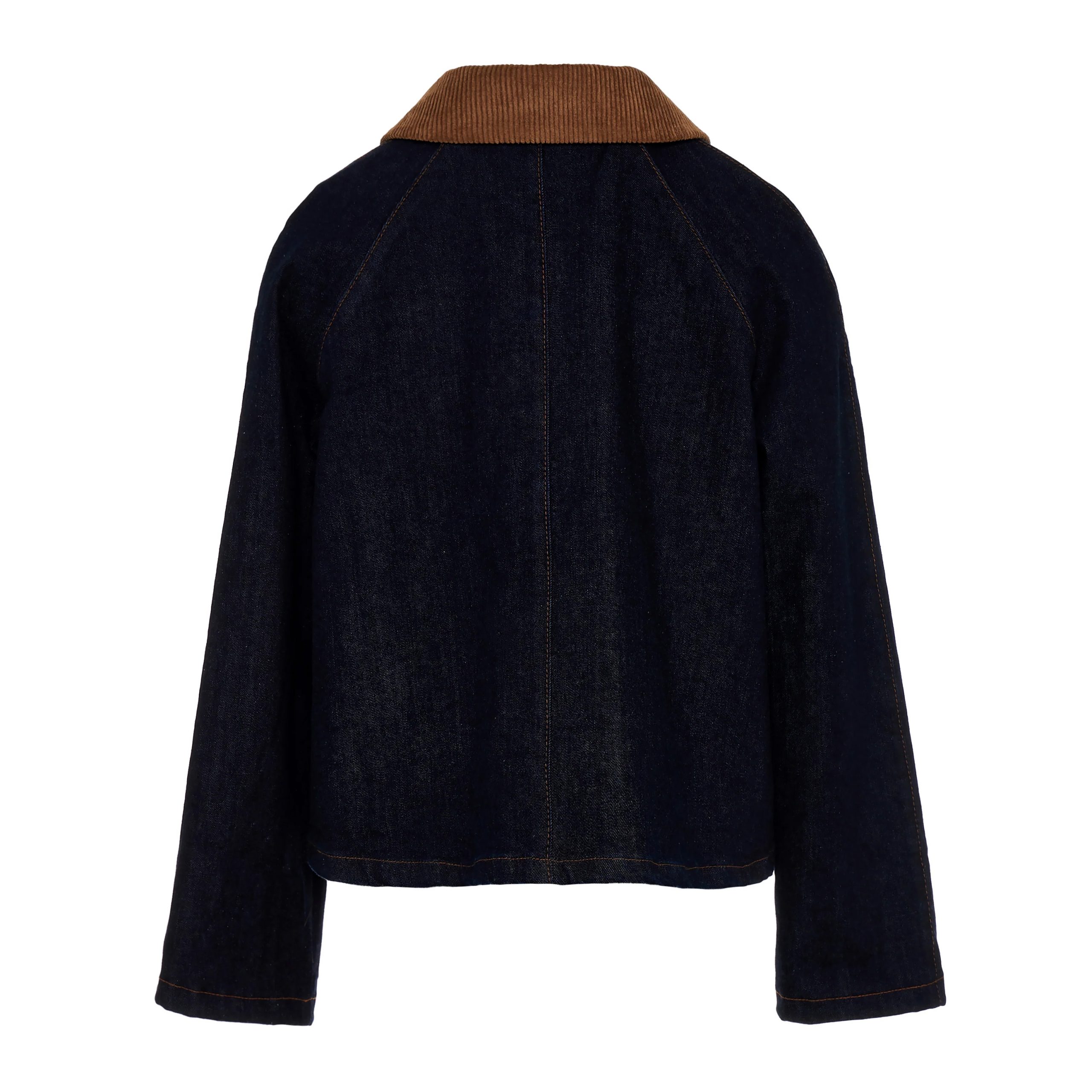– Deep indigo denim with contrast brown corduroy collar