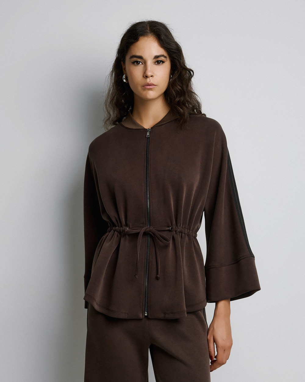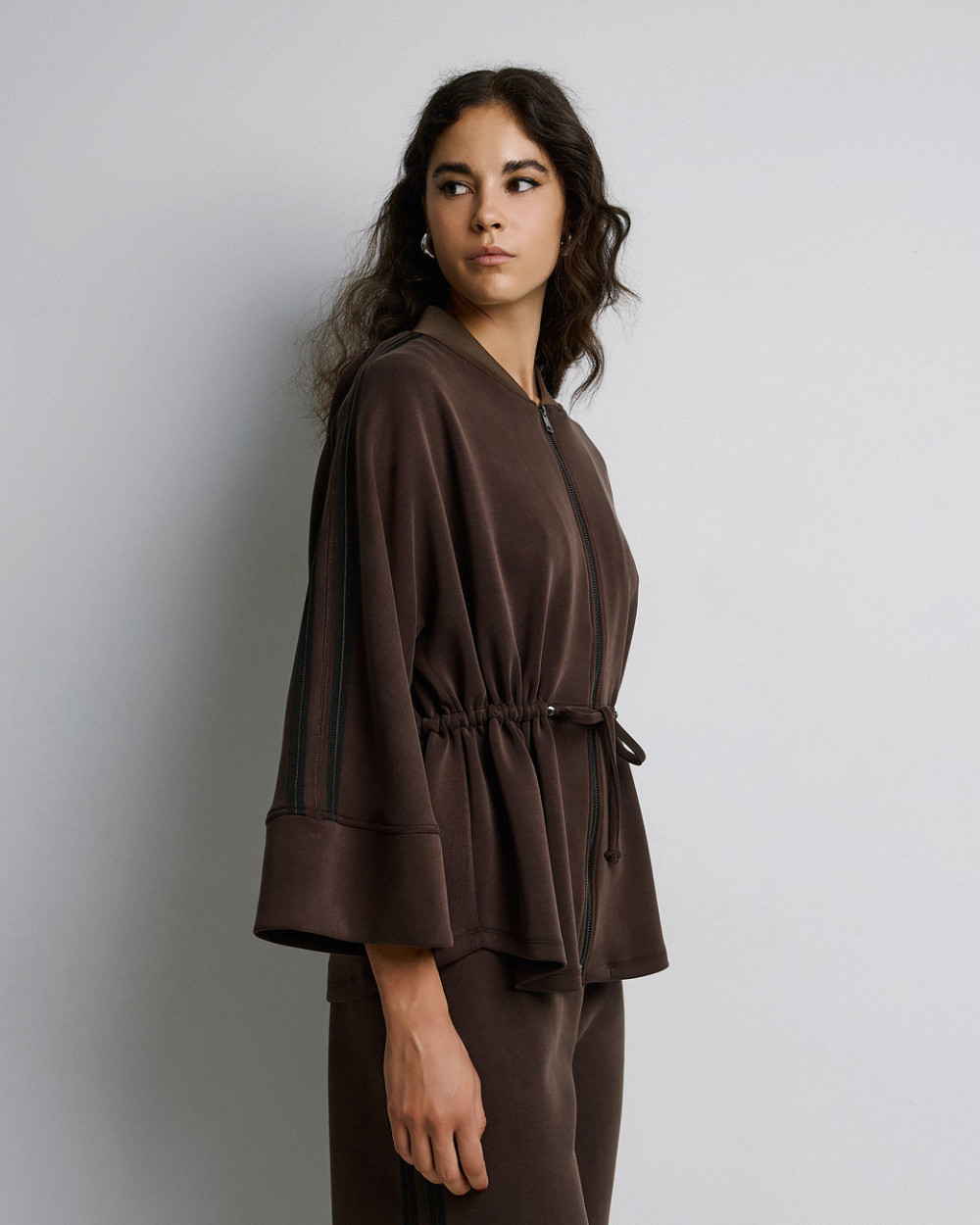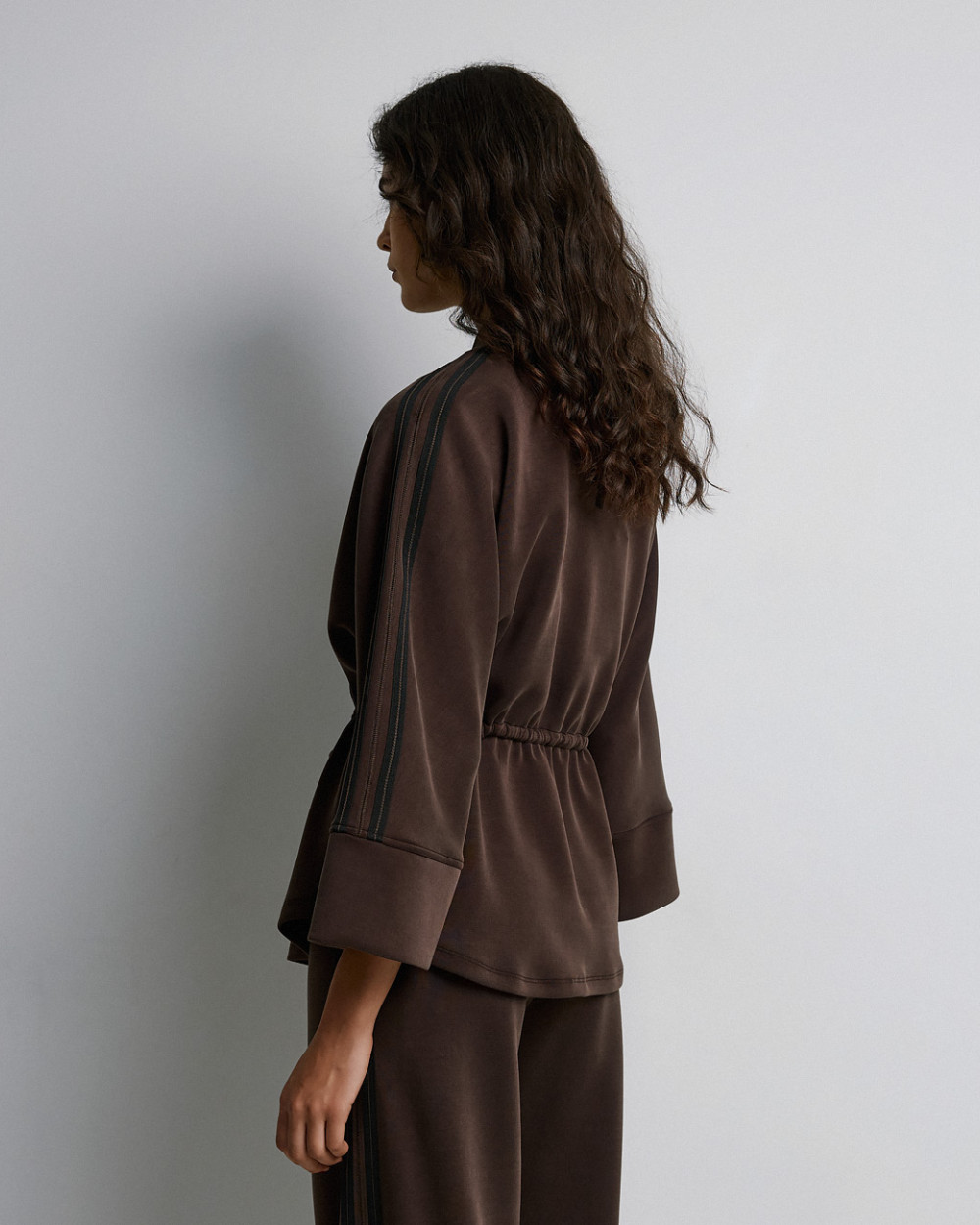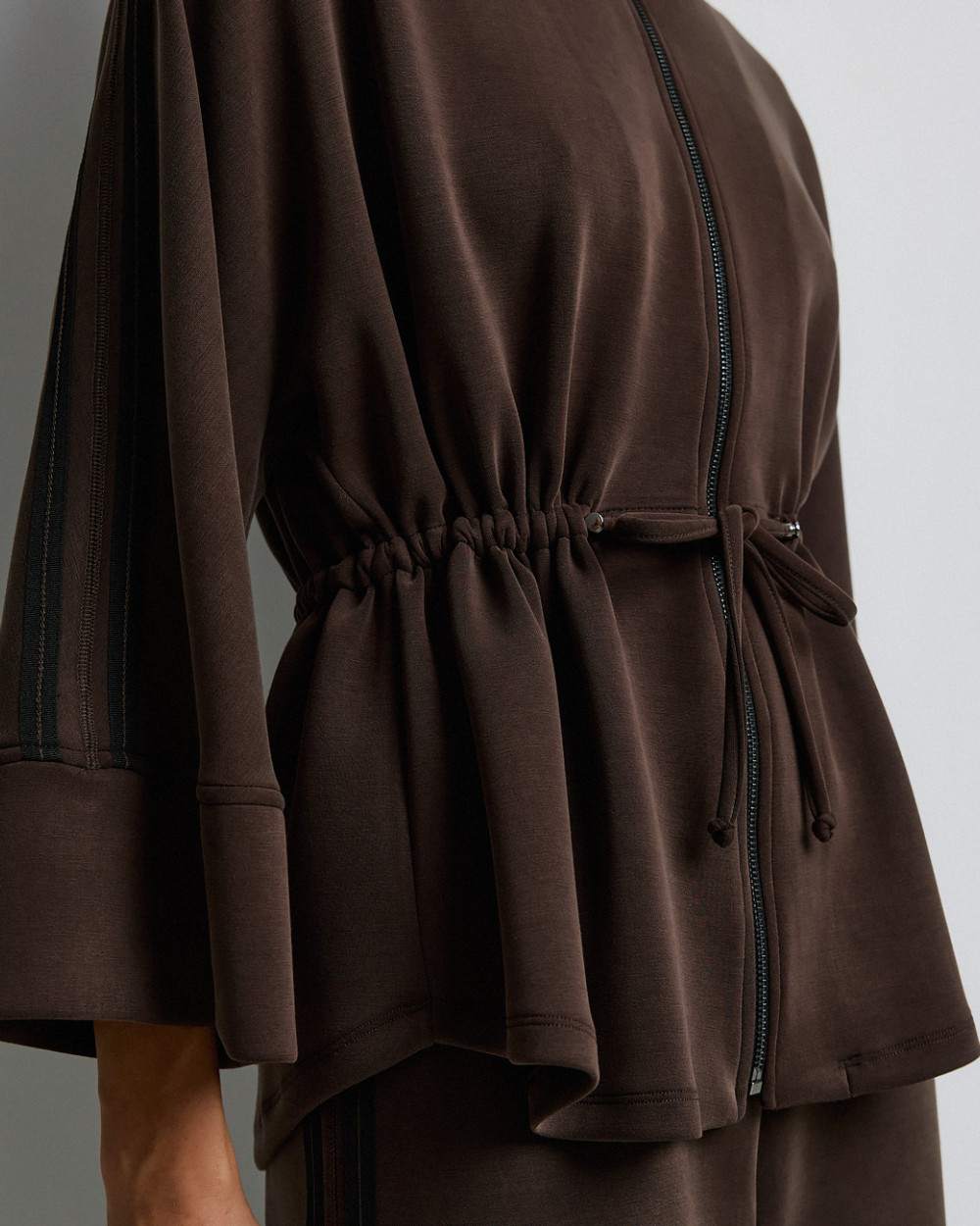 – Striped trim on the sleeves