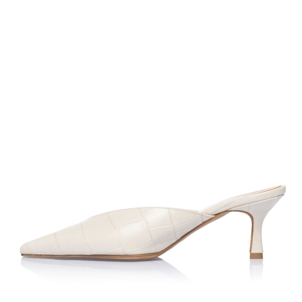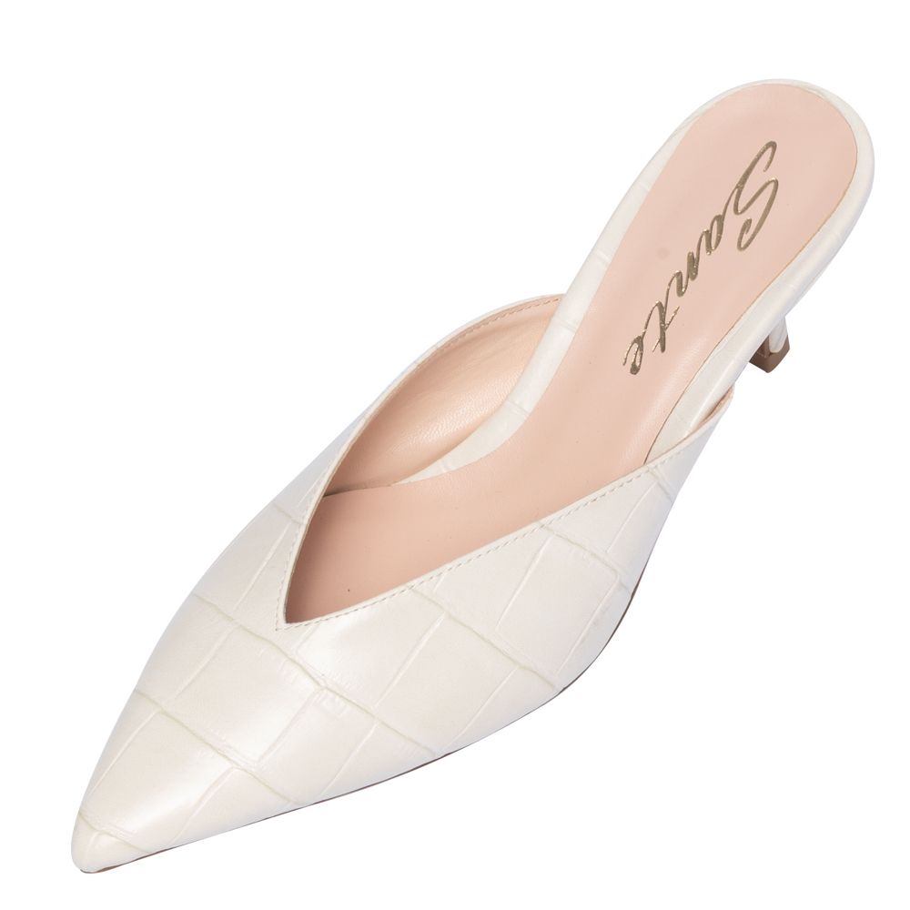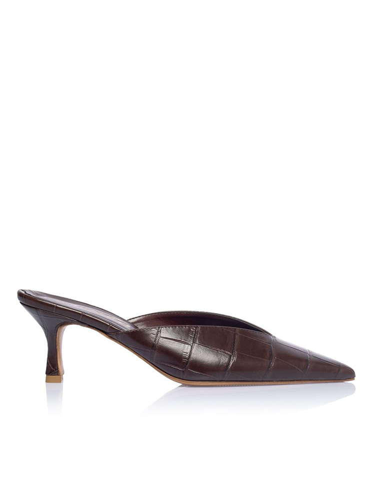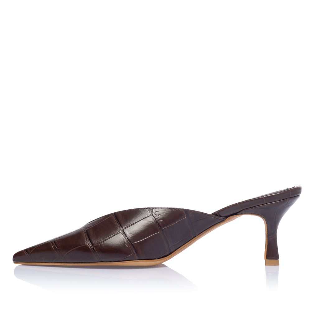 These mules from Sante Shoes offer a sophisticated yet effortless look, crafted from croco-effect eco leather with a sharp pointed toe and elegant kitten heel. The slip-on mule style, paired with a cushioned insole and soft lining, ensures comfort throughout the day, made in Greece.