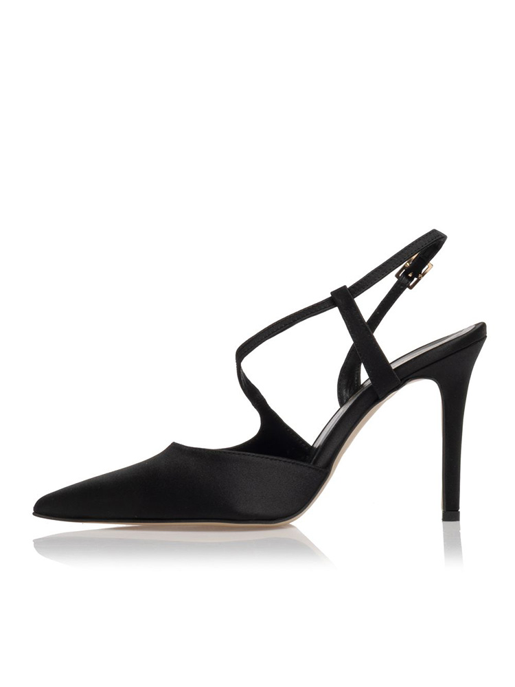 These chic satin slingback heels are the epitome of elegance. Featuring delicate cross-over straps with a secure buckle fastening, they combine timeless design with a modern twist. The pointed toe elongates the foot, while the sleek stiletto heel adds height and confidence, making them ideal for both formal and evening wear.