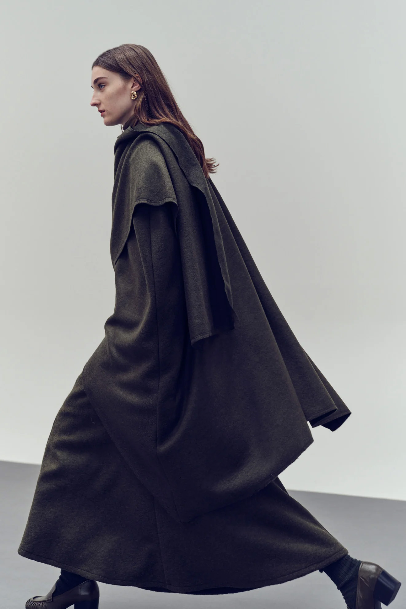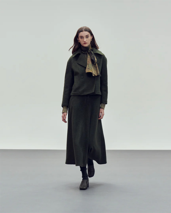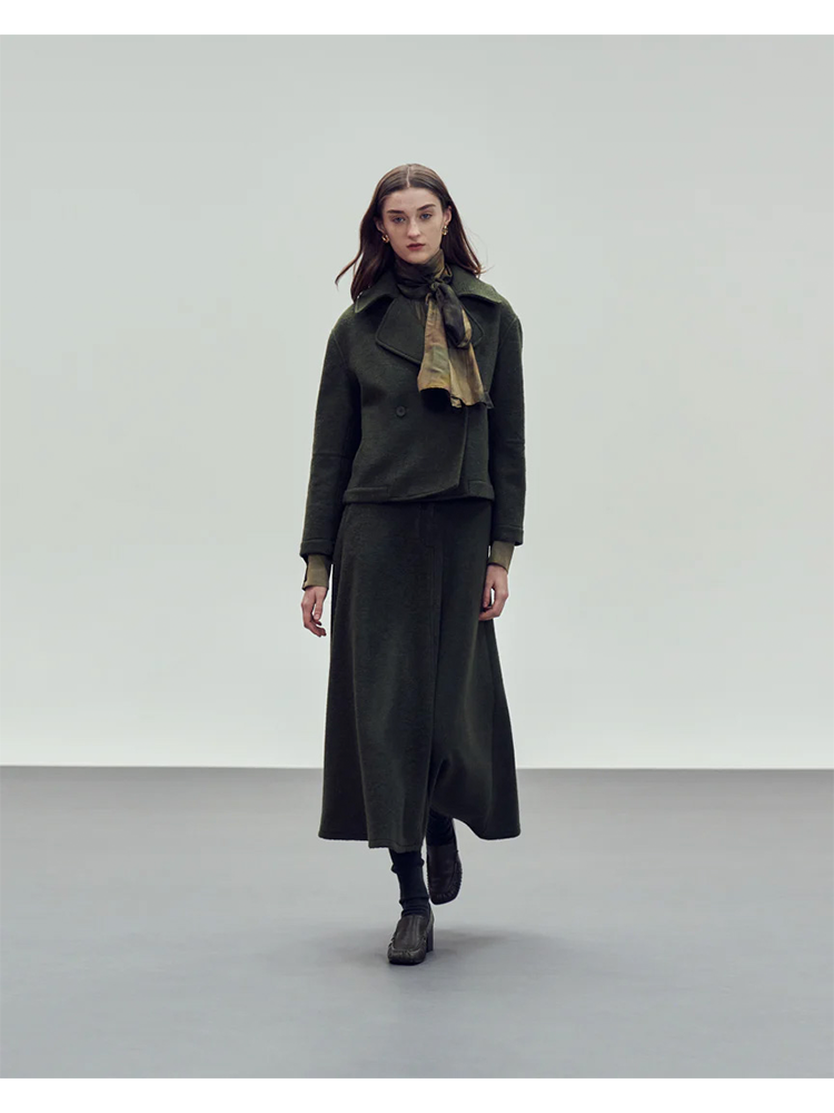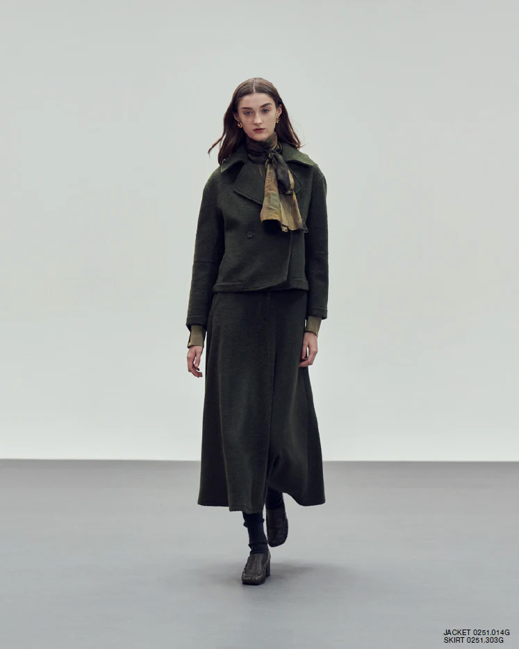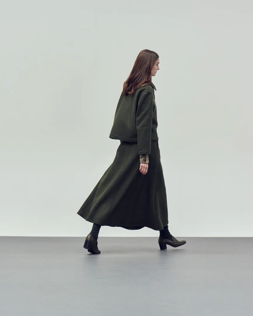 This khaki maxi skirt crafted from a soft, cozy fabric, it delivers both comfort and sophistication. The high-waisted cut elongates the silhouette, while the generous length creates graceful movement. Ideal for layering with jackets or relaxed knitwear.