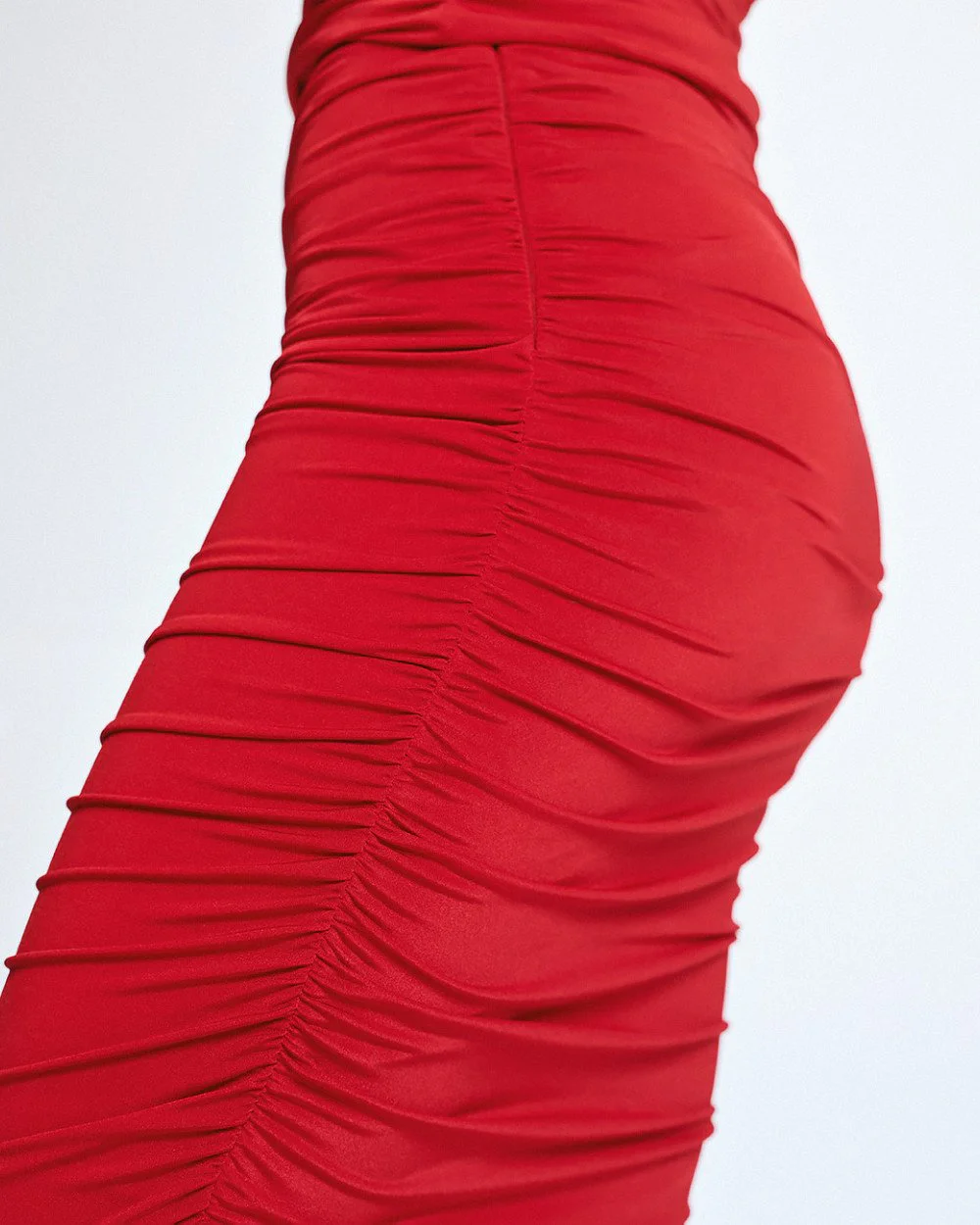 Midi skirt with ruched detailing and an asymmetric hem. Pair with the matching top from our collection.