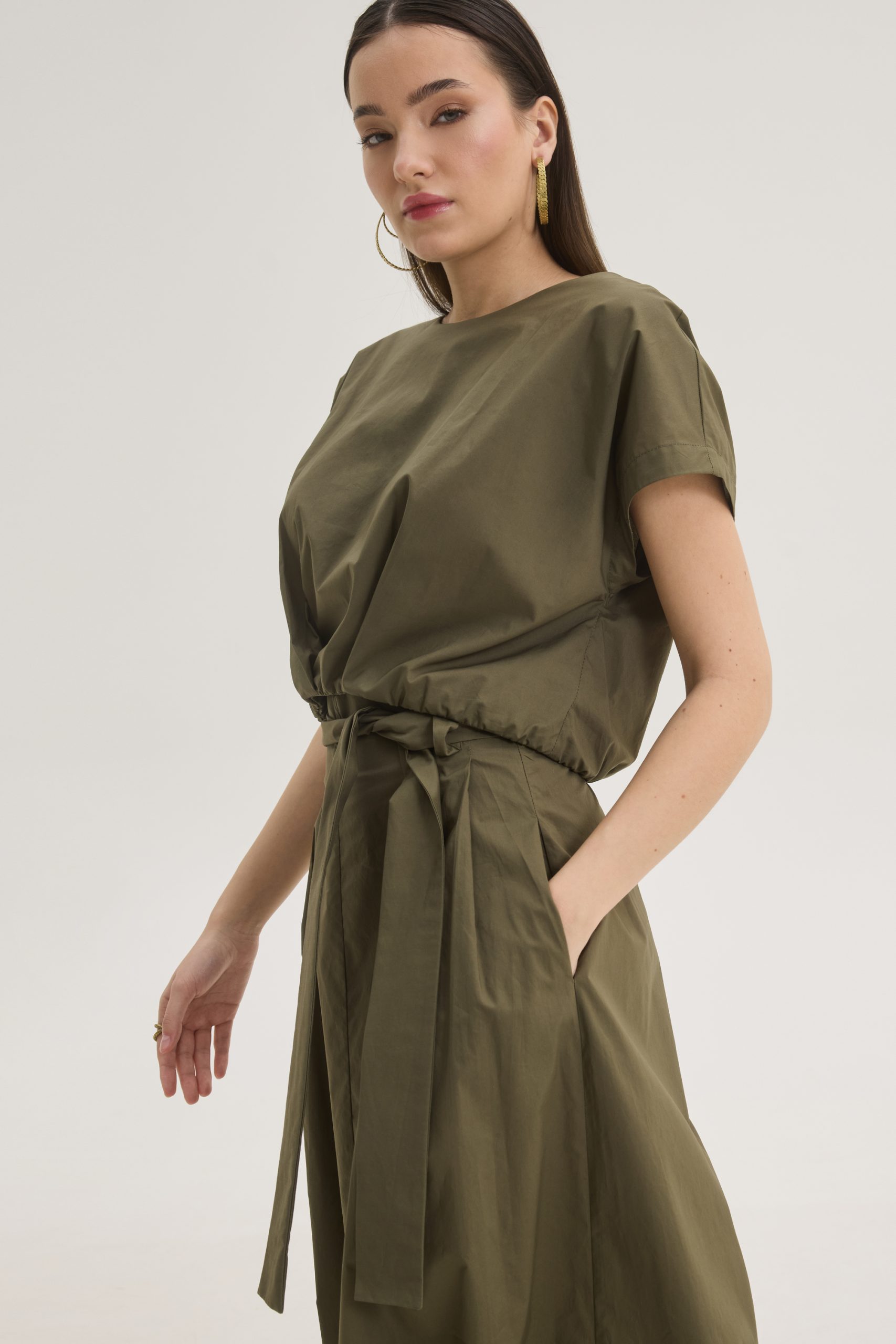 Cotton midi skirt crafted from smooth, breathable cotton it features a flattering high-rise waist. The adjustable waist tie adds a refined touch while allowing for a customizable fit. Falling to a midi length, the skirt offers a softly structured a-line shape.