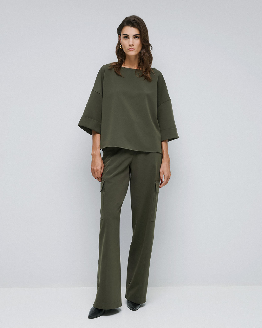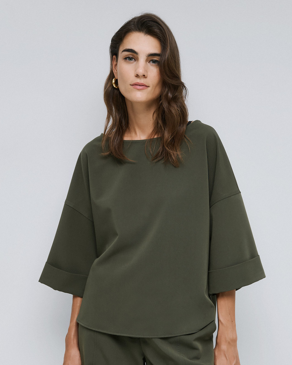 – 3/4 sleeves with turned-up cuffs