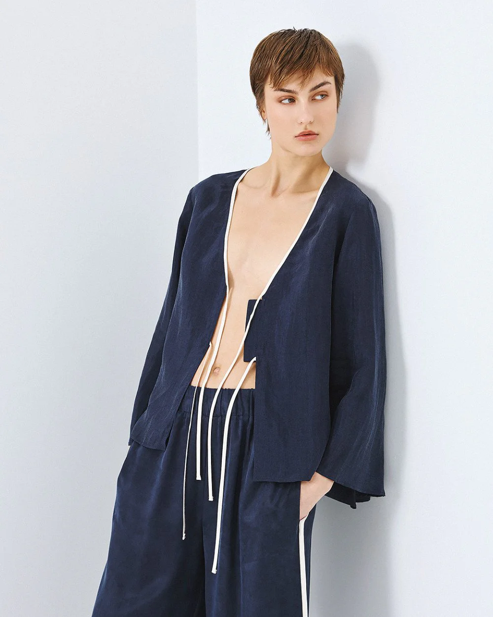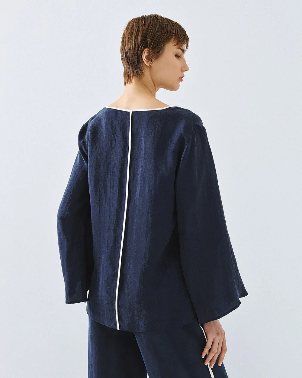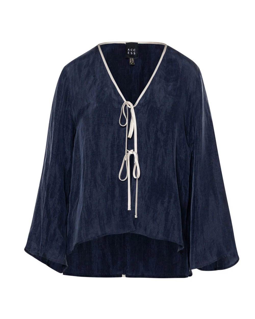 Blouse with trim detailing and tie-up cords – Access Fashion