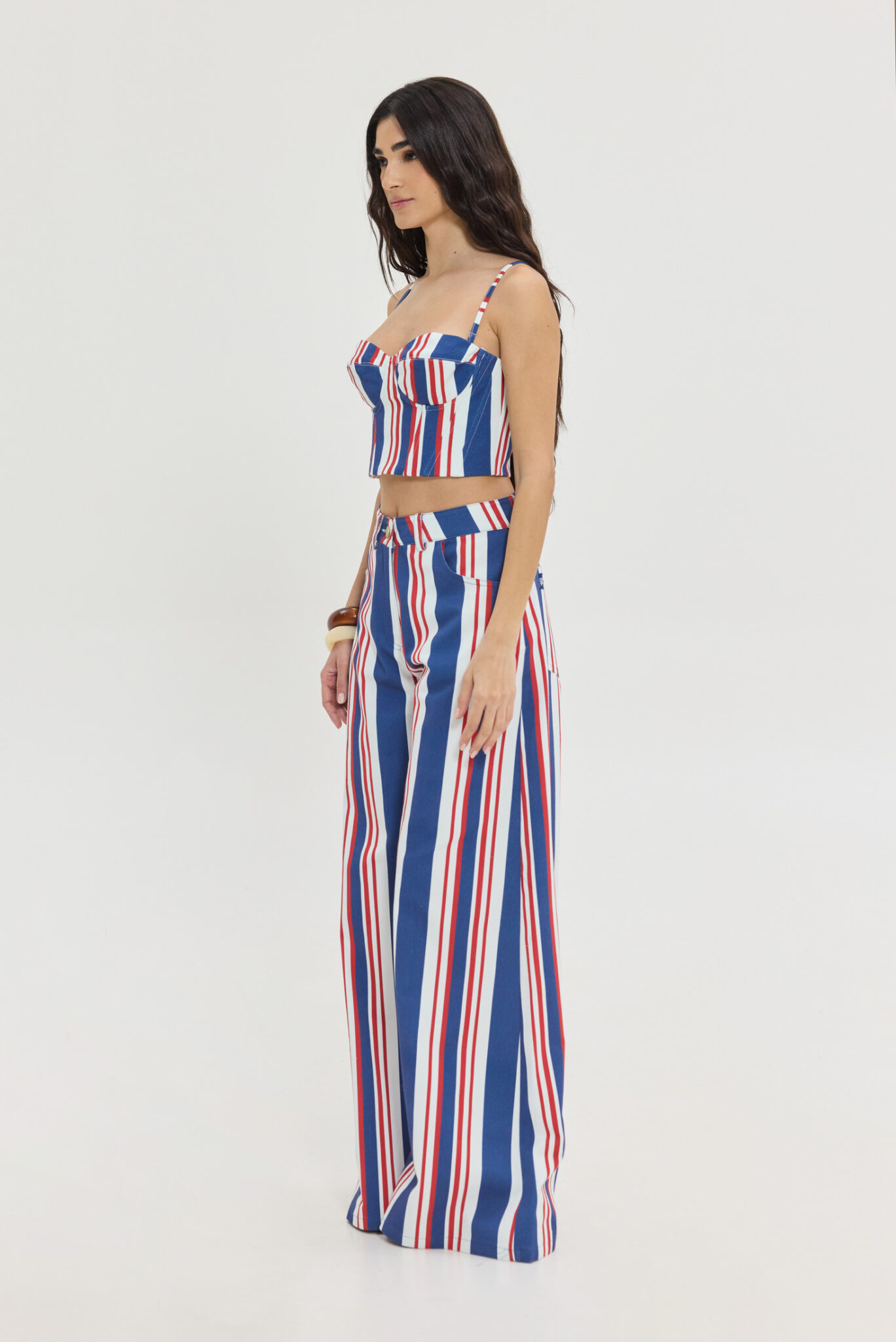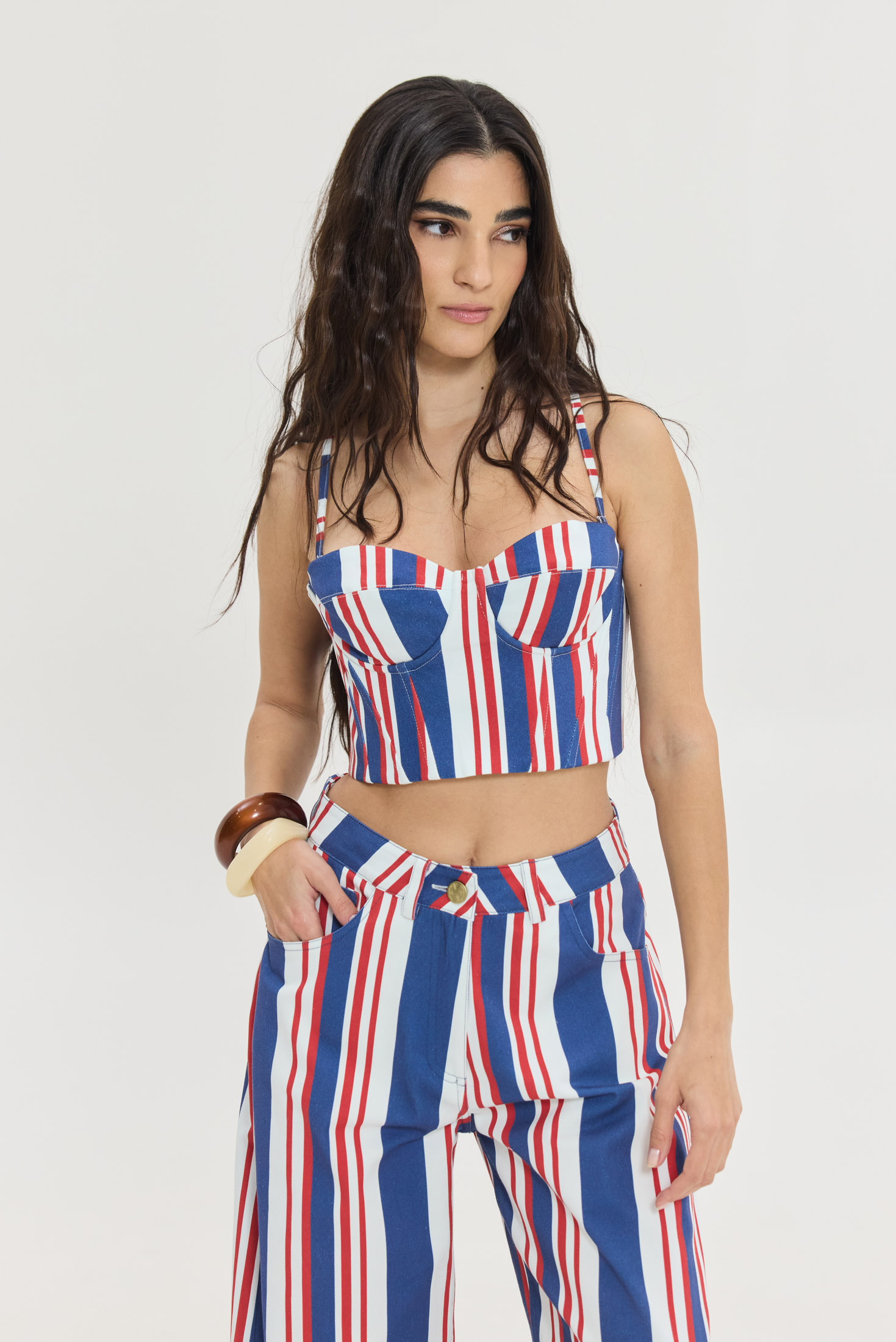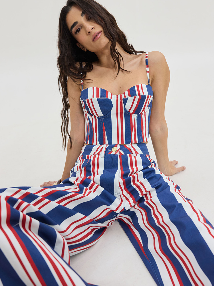 A bold, structured piece designed to enhance the silhouette from Hemithea. The nautical stripes combined with a sculpted fit create a striking yet feminine look, perfect for statement summer styling.