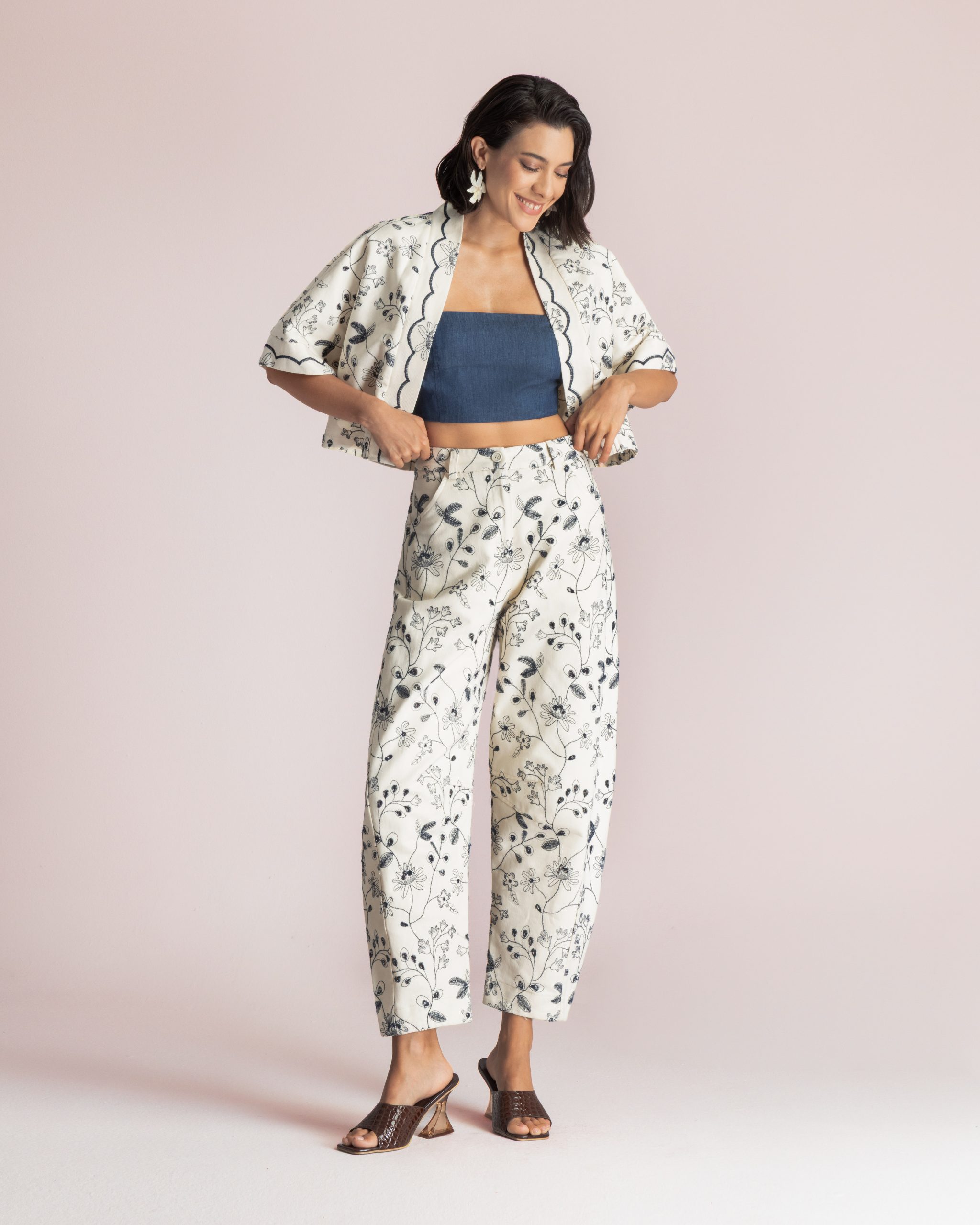 Cropped floral print kimono – Moutaki