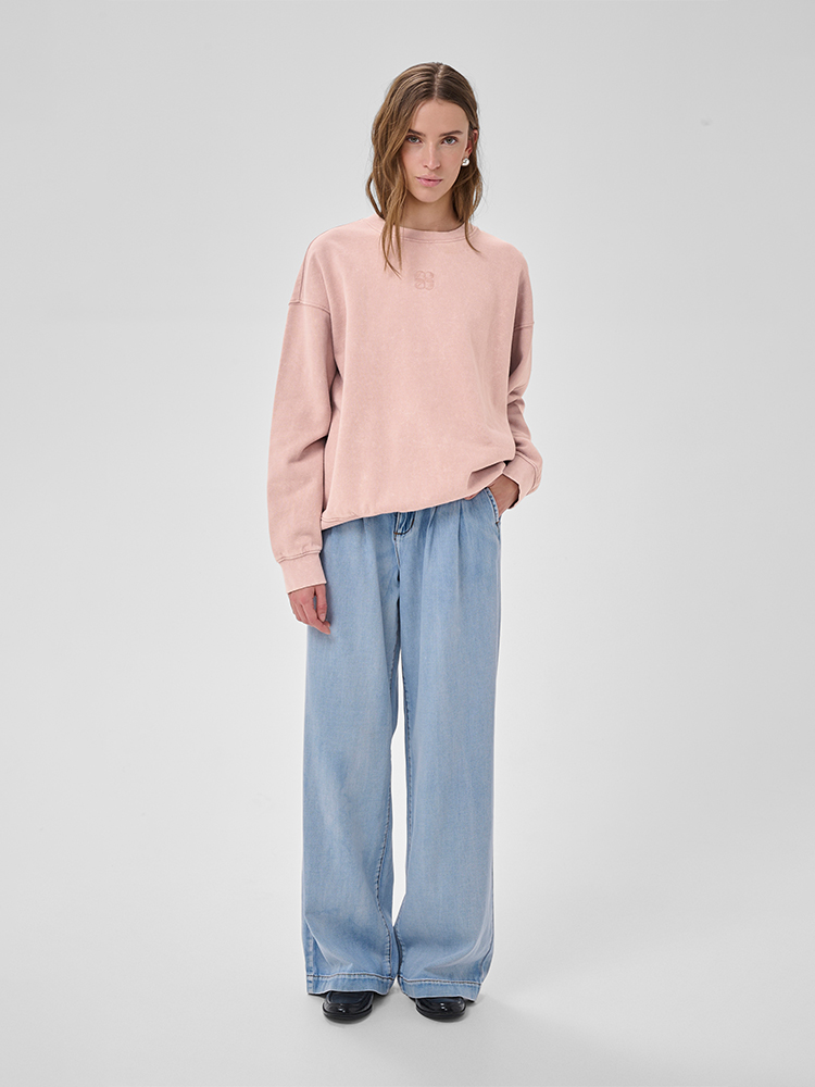 A relaxed sweatshirt in a soft rose wash, designed in a baggy fit for effortless comfort and modern style from My Essential Wardrobe. Crafted from pure cotton, it features subtle detailing and a laid-back silhouette that makes it an easy everyday staple.