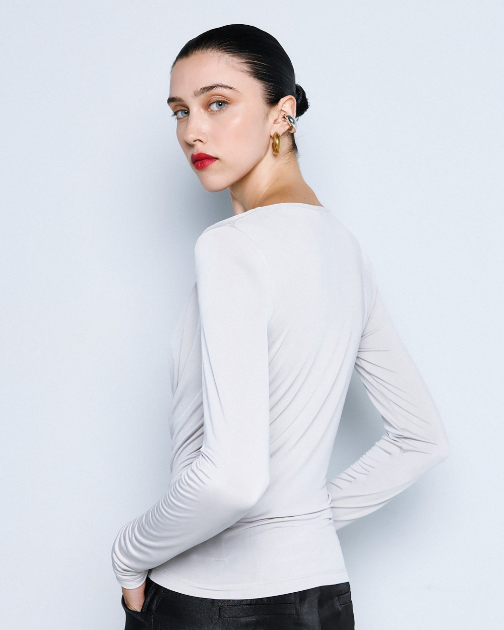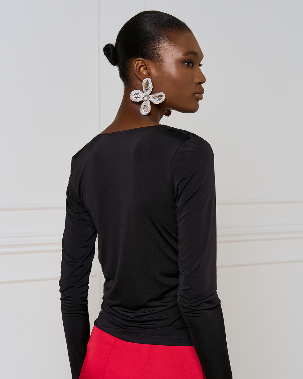 Long-sleeved fitted blouse with a draped neckline and ruched details from Access Fashion. It is an ideal choice for elegant and stylish looks.