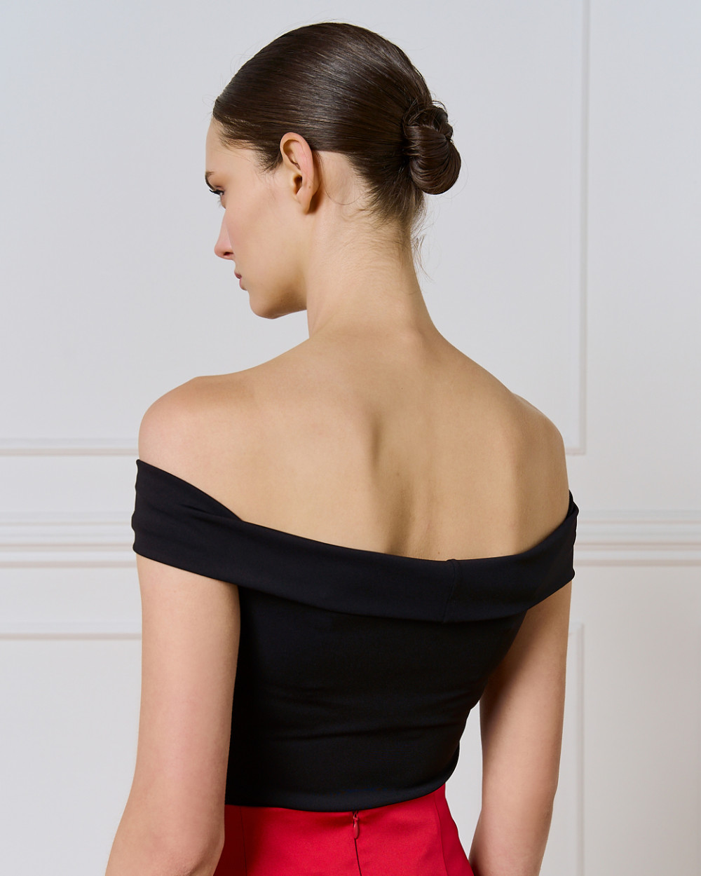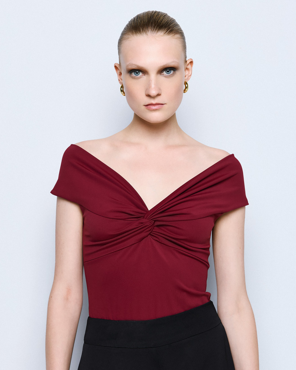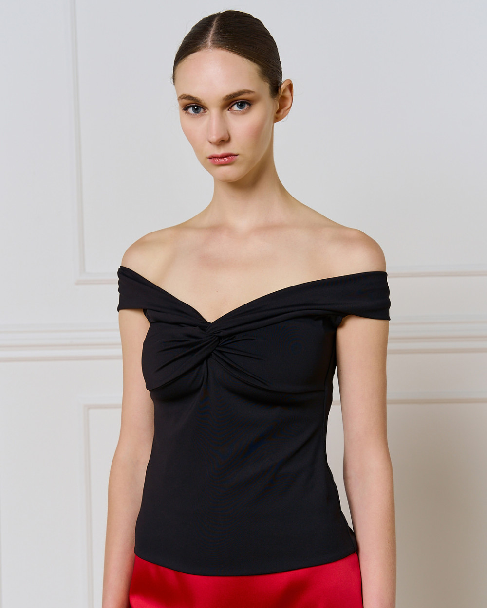 Fitted off-the-shoulder top with a knot – Access Fashion