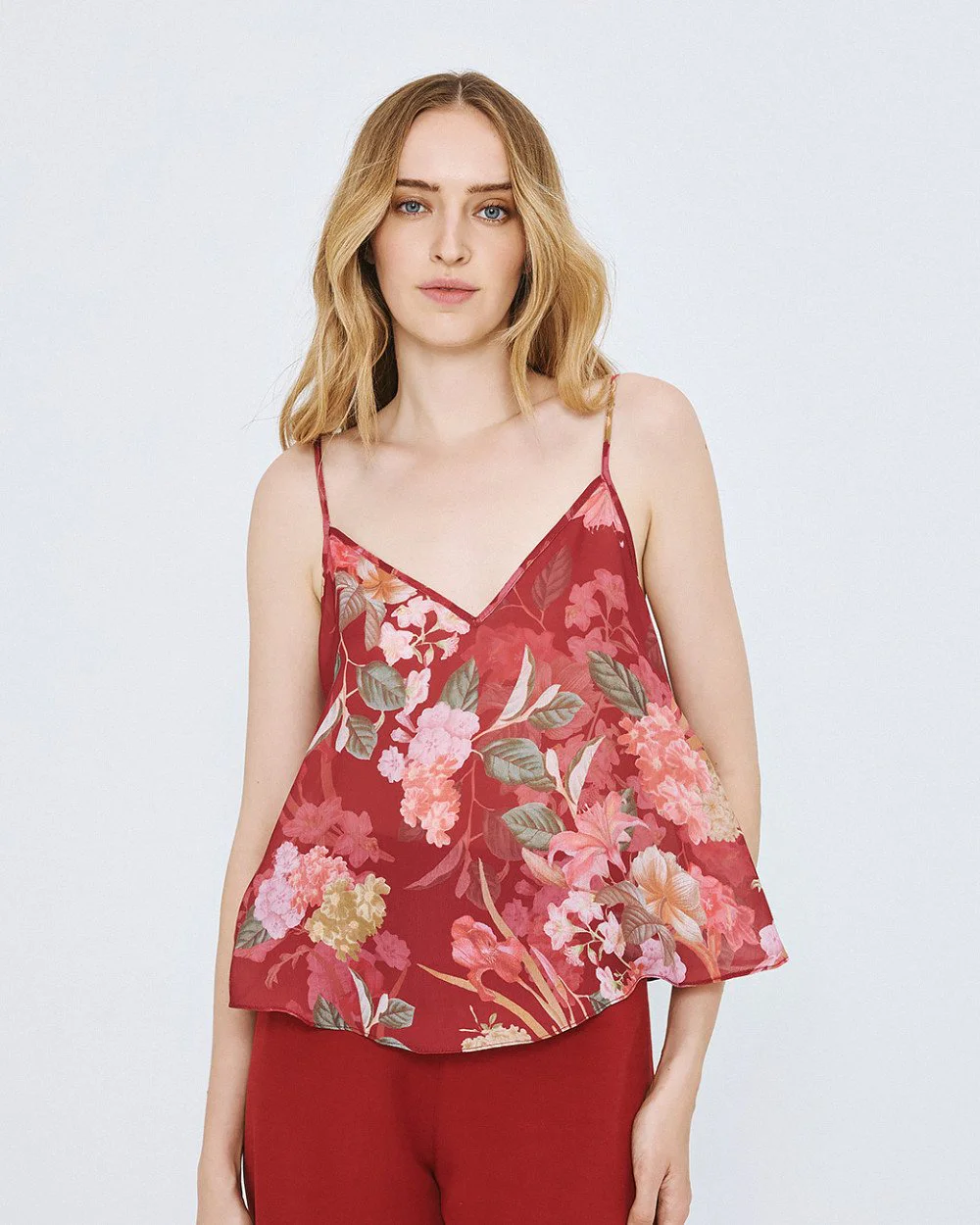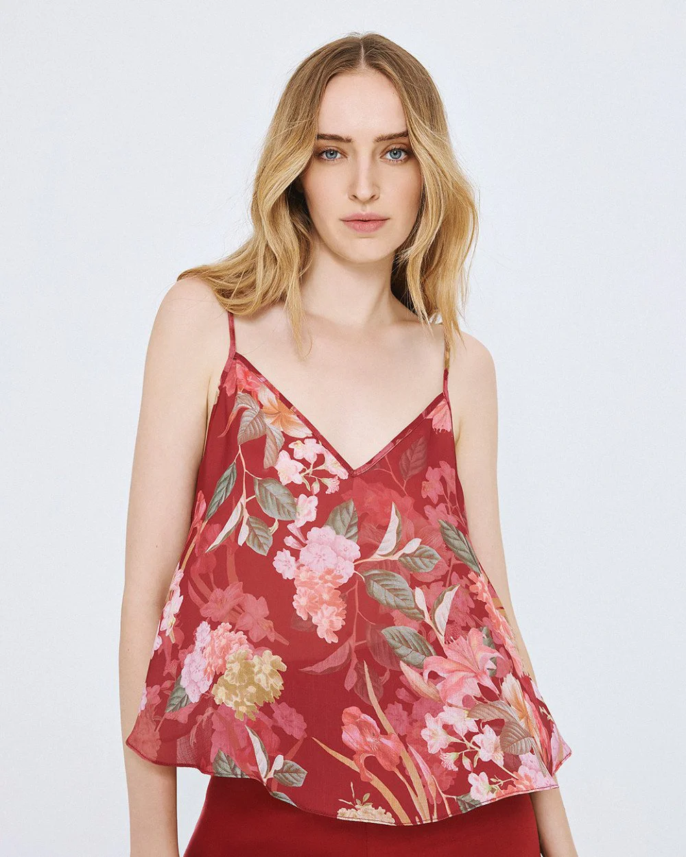 This floral top features a relaxed, flowy silhouette. Crafted from a soft, lightweight fabric, the v-neckline and thin adjustable straps making it perfect for both casual styling outfits.