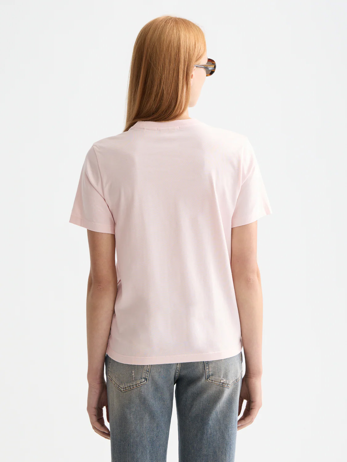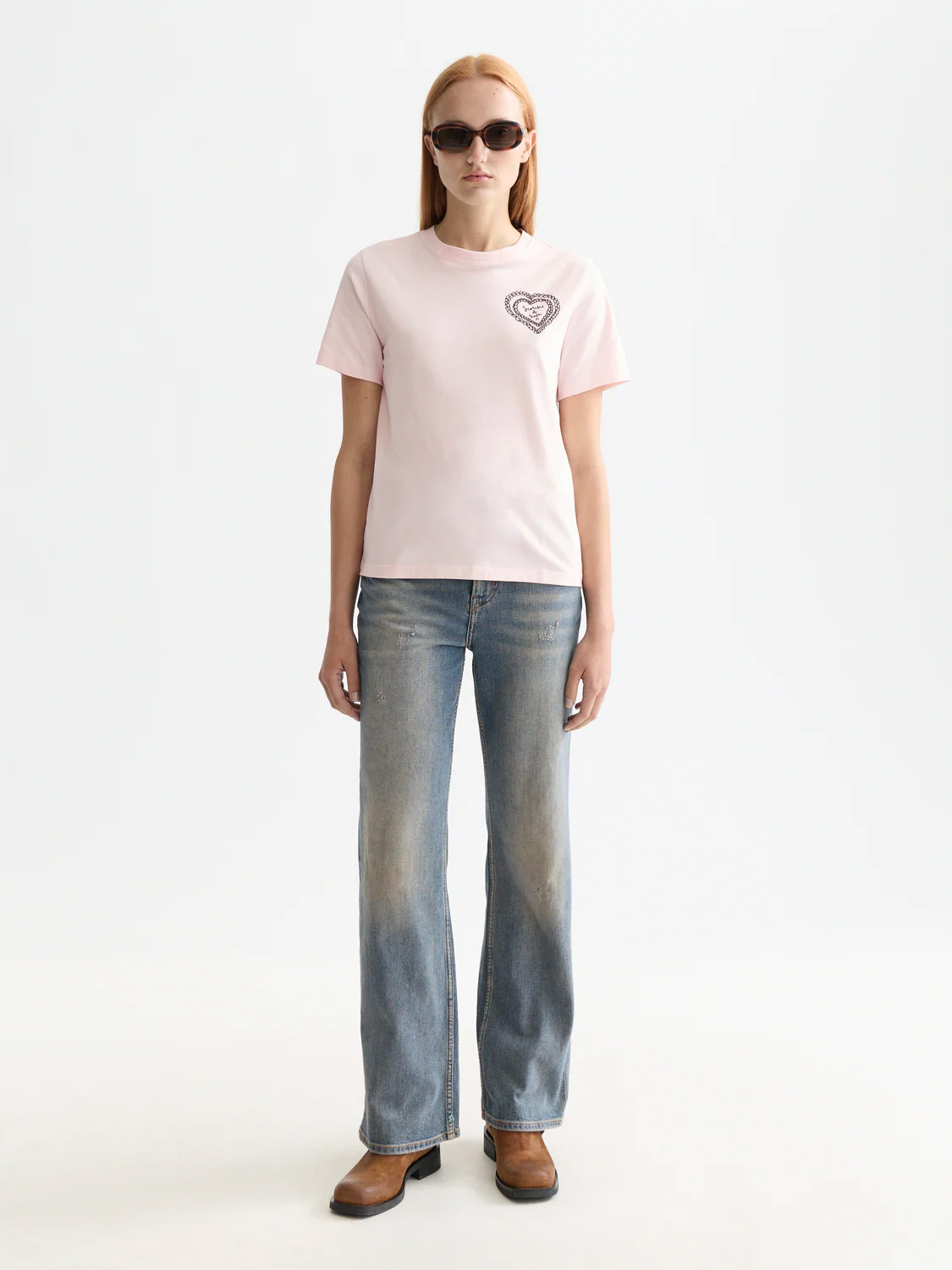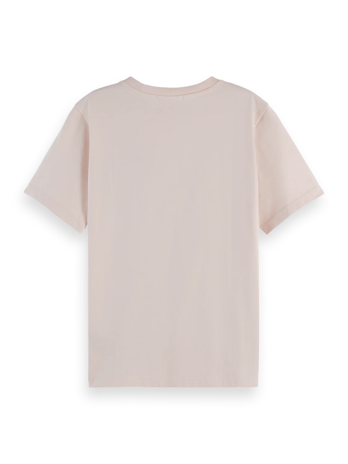 This Scotch & Soda light pink t-shirt crafted from soft, breathable cotton, it features a delicate heart-shaped logo print on the left chest with the brand?s name. The clean design, combined with its relaxed fit and high-quality fabric, makes it a wardrobe essential that pairs effortlessly with jeans, shorts, or tailored trousers for a casual-chic look.