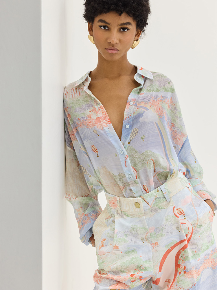 Metallic-effect pants with a geometric pattern – Access Fashion