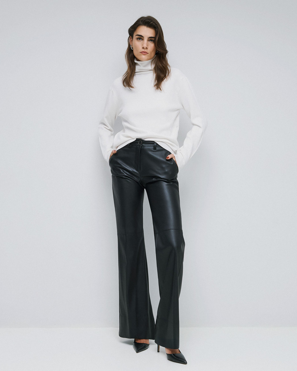 Knitted long-sleeve turtleneck blouse with ribbed hem and cuffs. A chic and stylish choice for comfortable everyday looks.