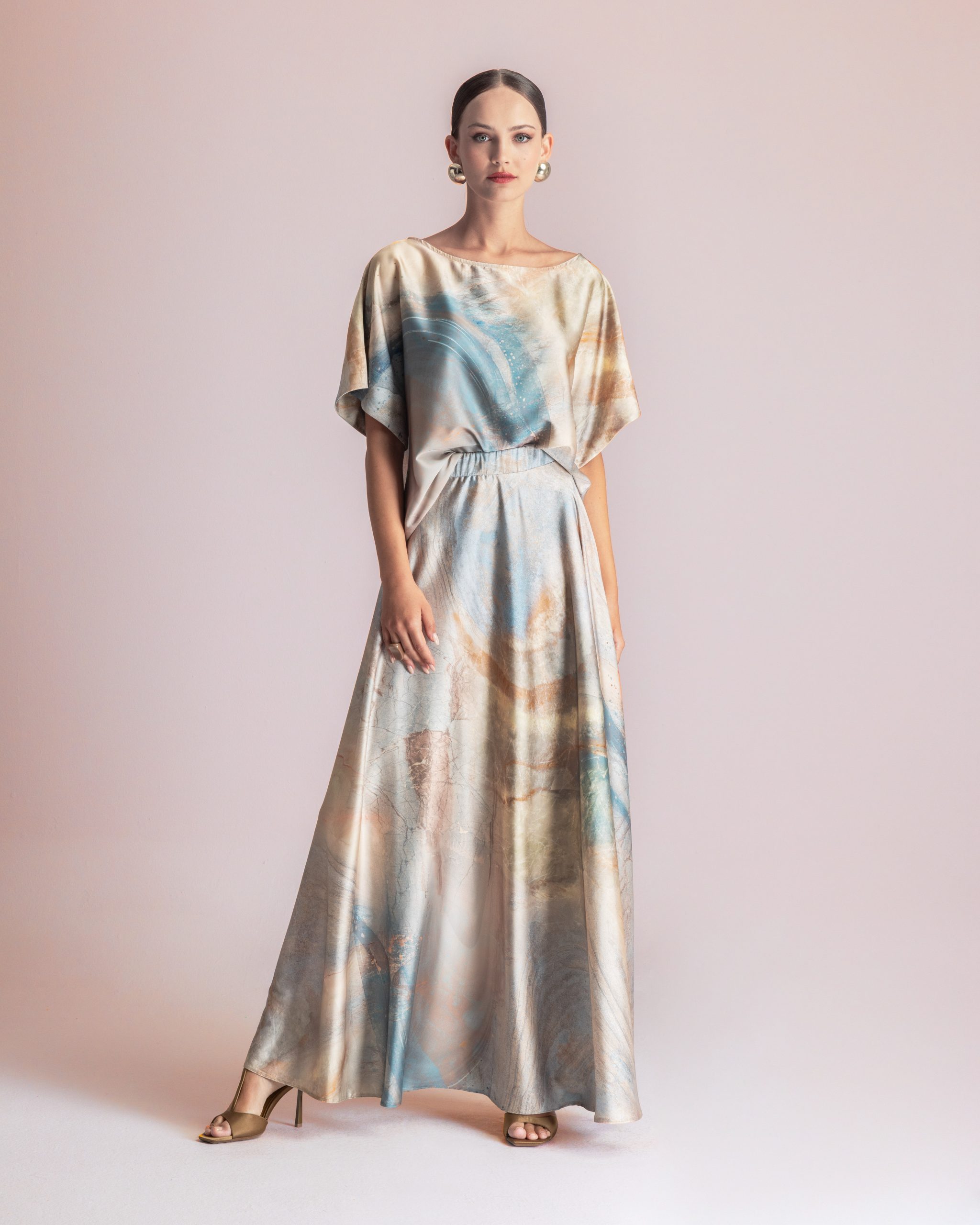 – Elegant abstract print in neutral and pastel tones