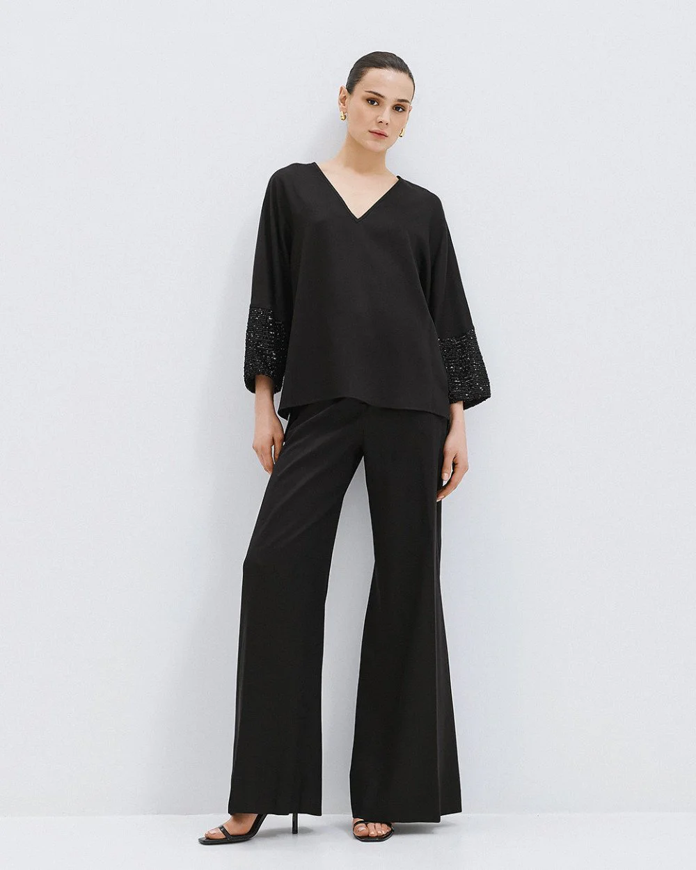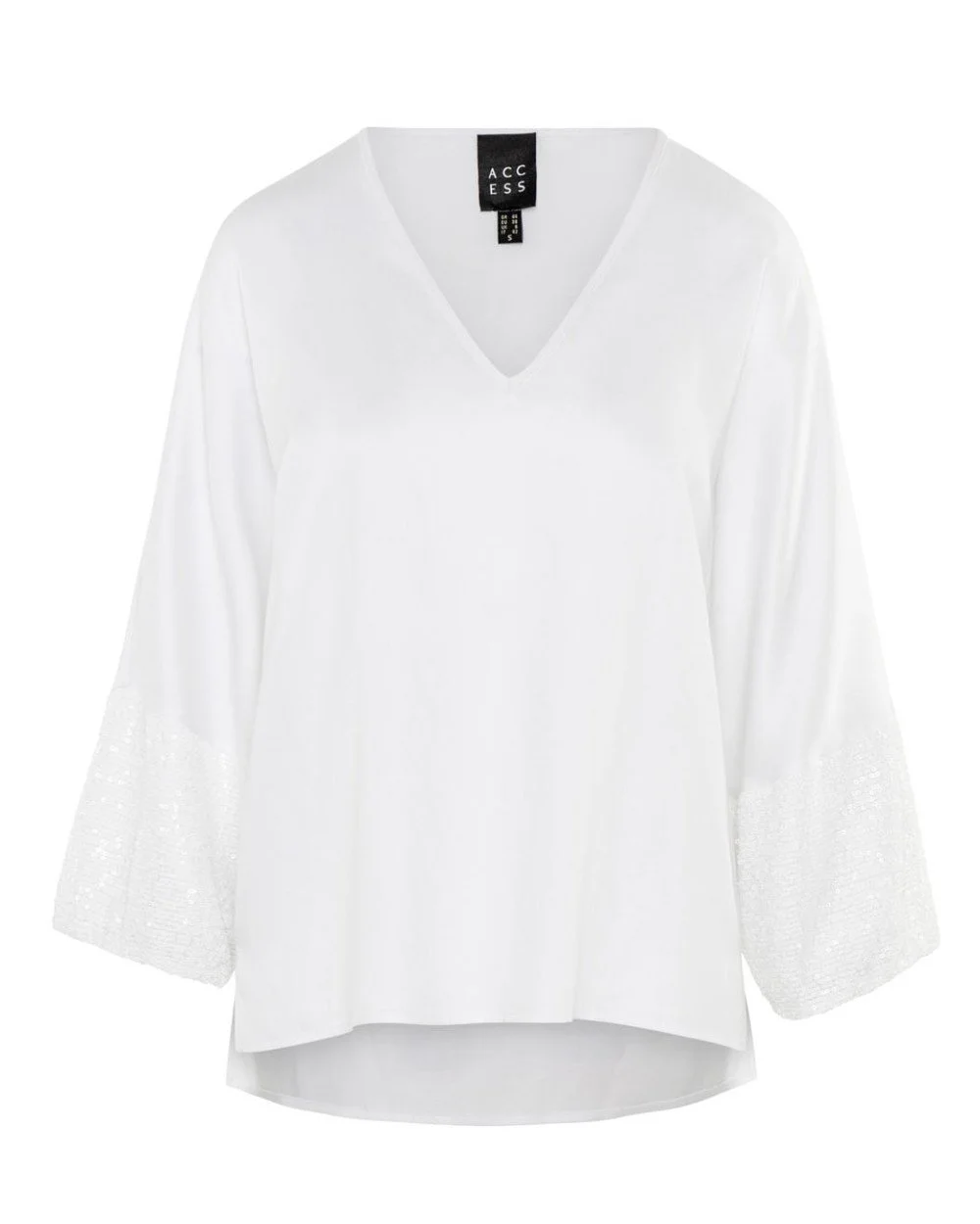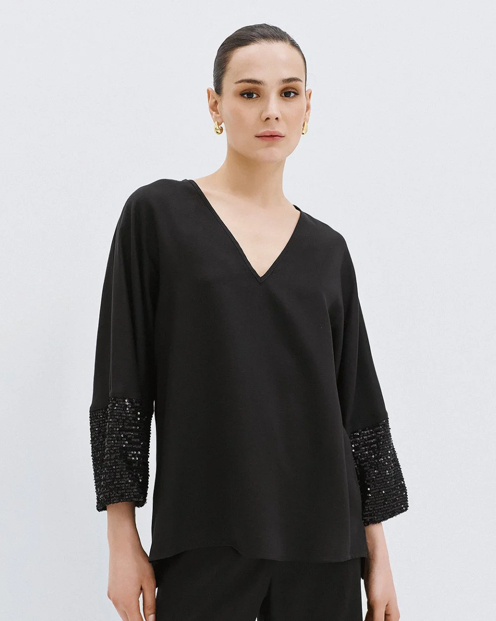 Relaxed fit blouse with v-neck and sequin sleeves – Access Fashion