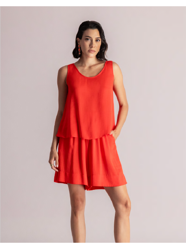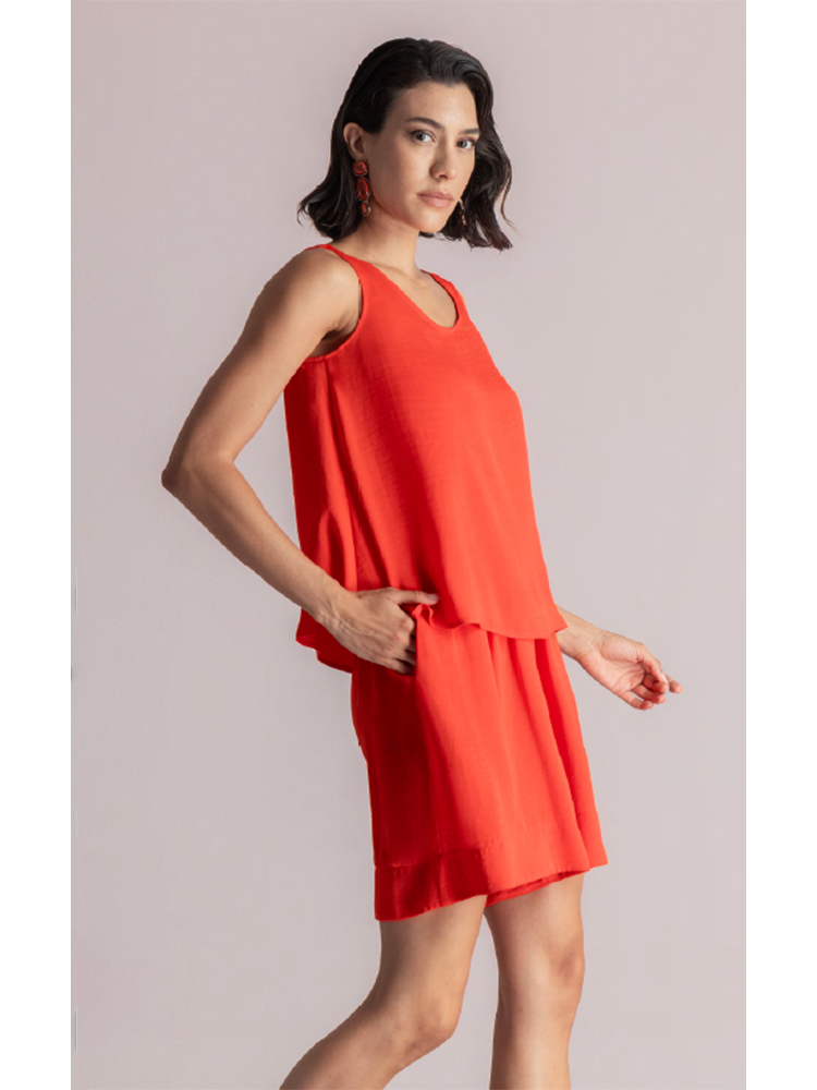 This sleeveless top is crafted from a lightweight, breathable fabric. Designed with a relaxed, flowy silhouette, it features a soft round neckline.