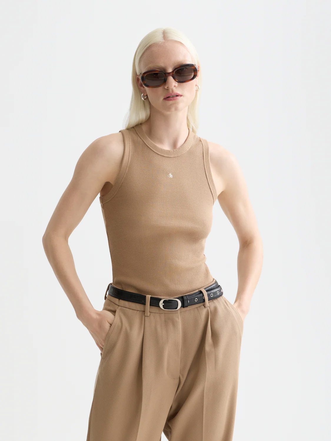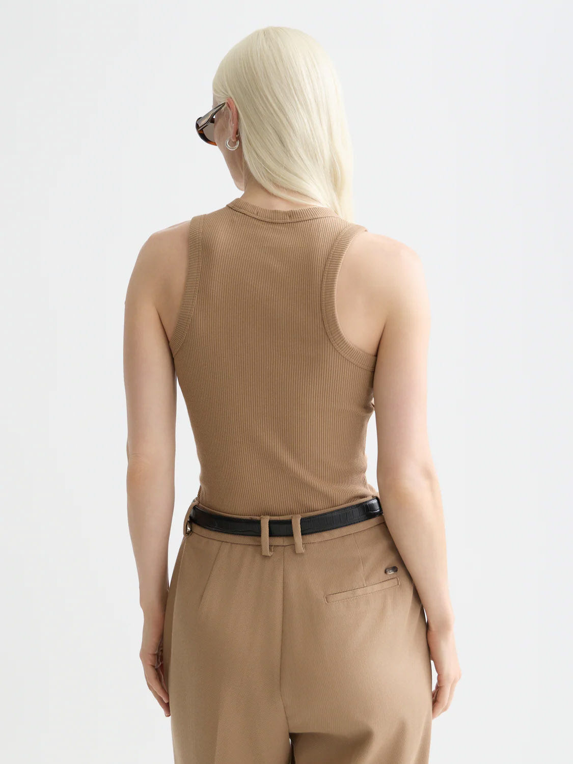 • ribbed racerback design for a clean, streamlined silhouette