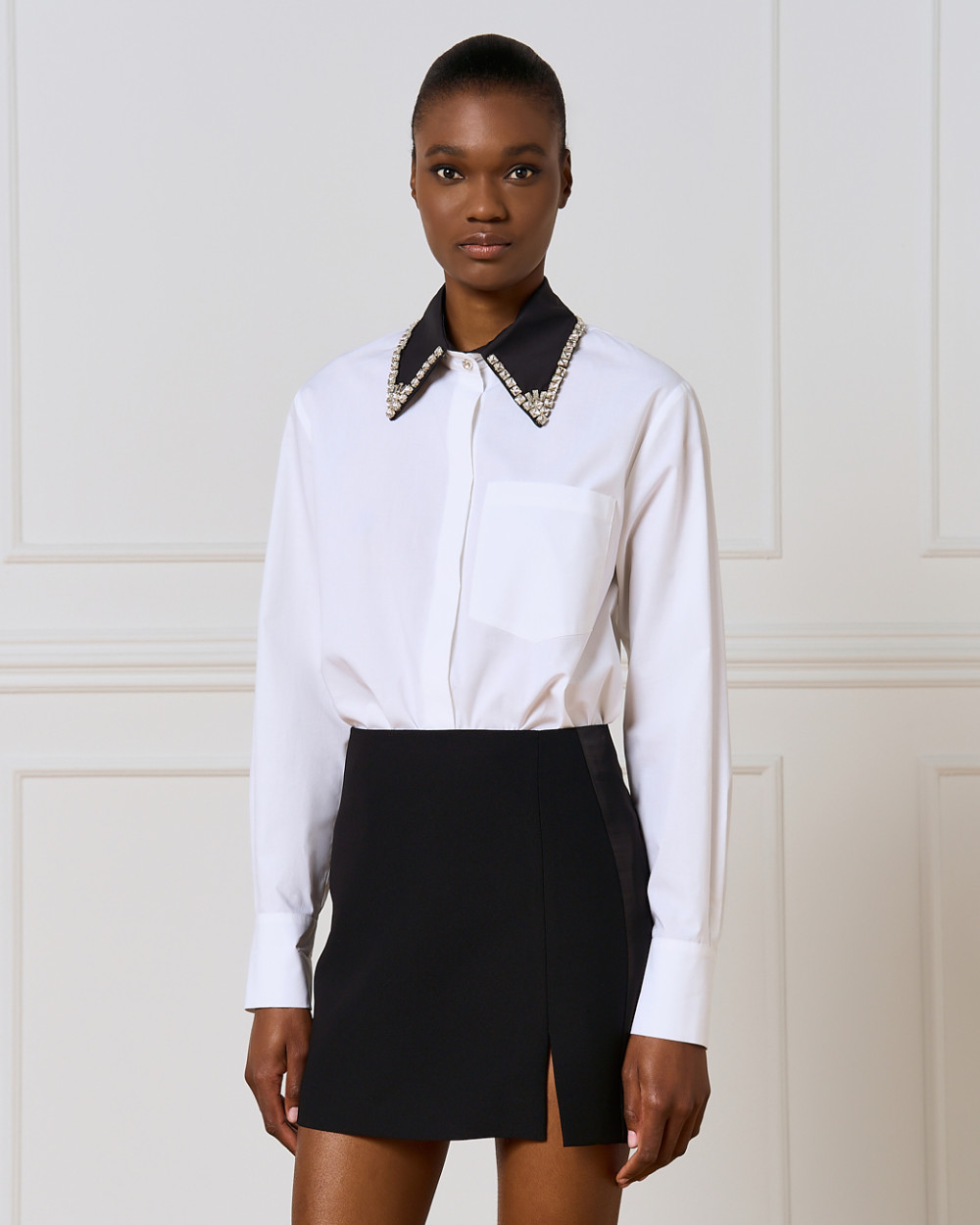 Shirt with a detachable collar featuring rhinestone details from Access Fashion. It is an ideal choice for stylish and comfortable looks.