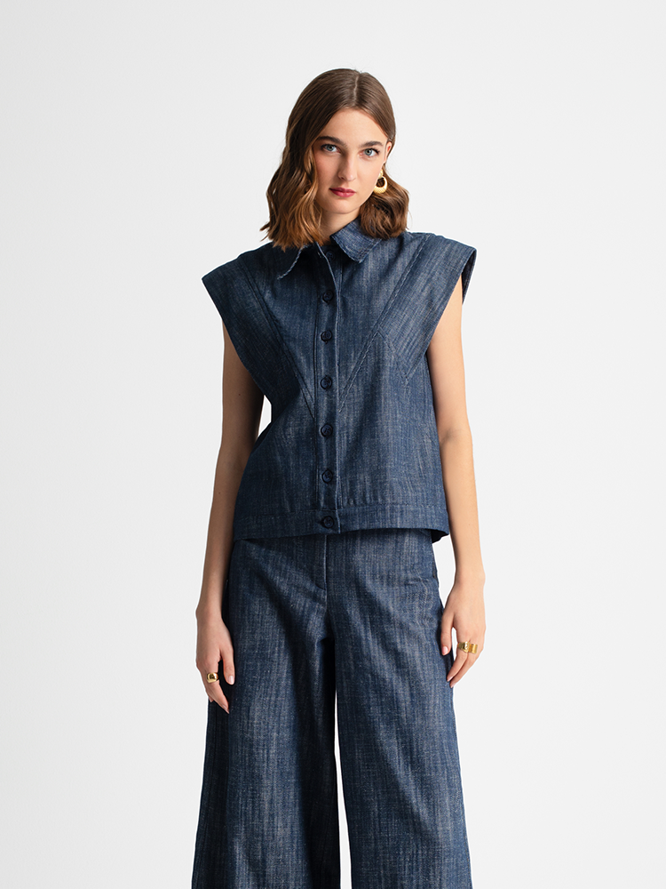 – Matches perfectly with coordinating wide-leg denim trousers