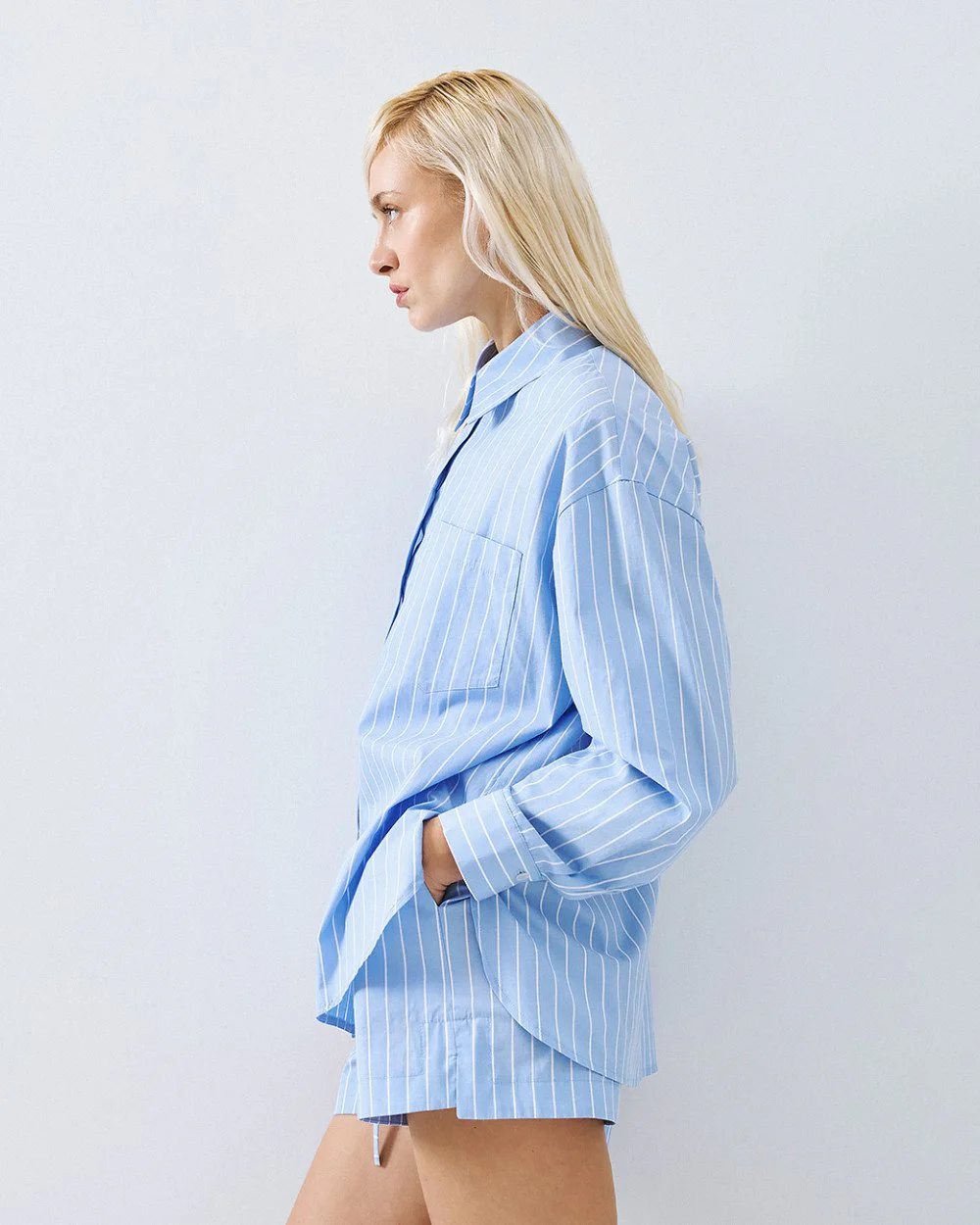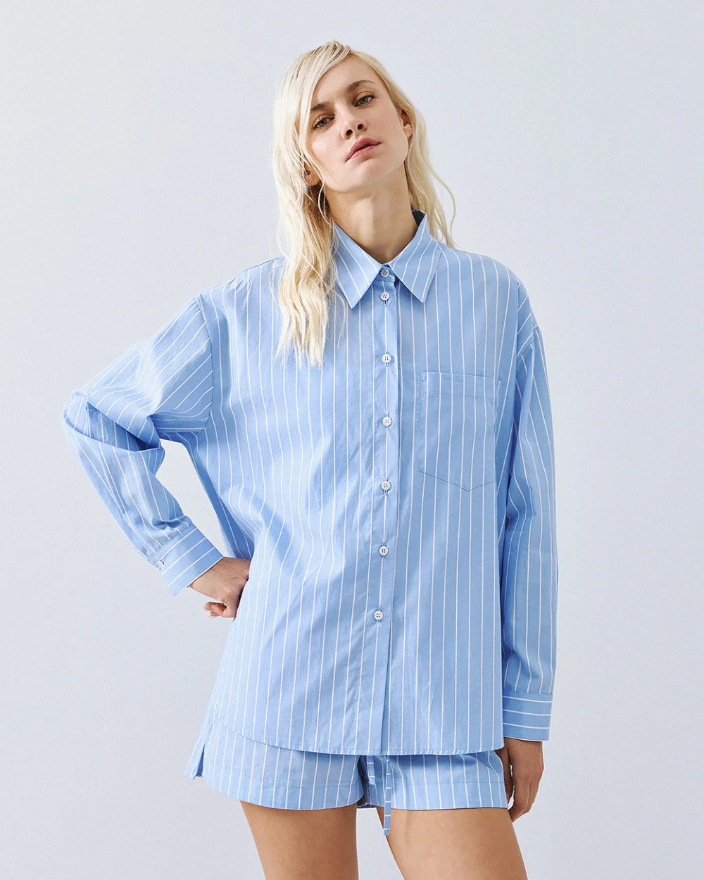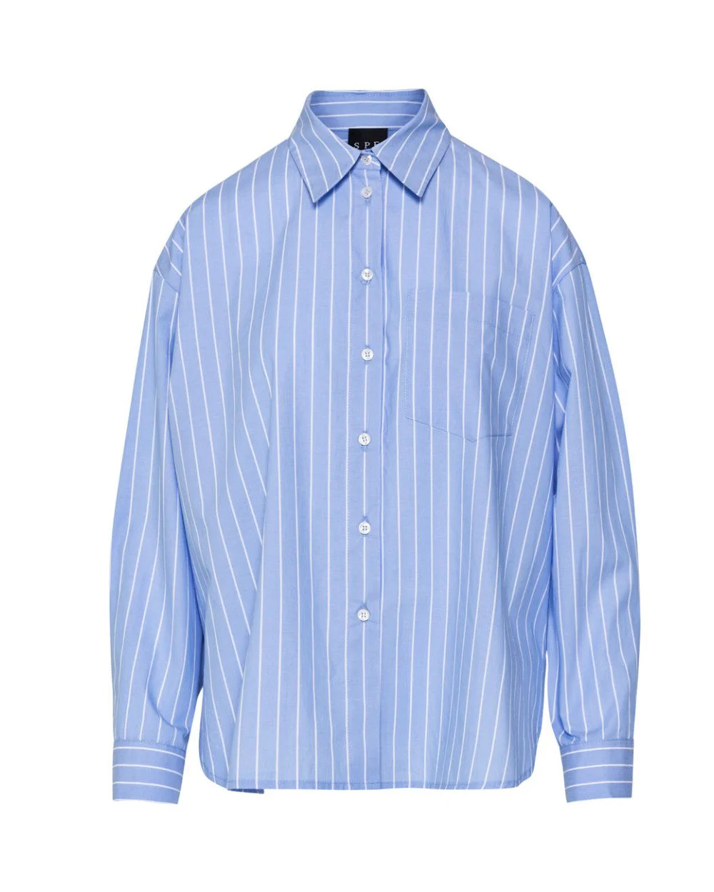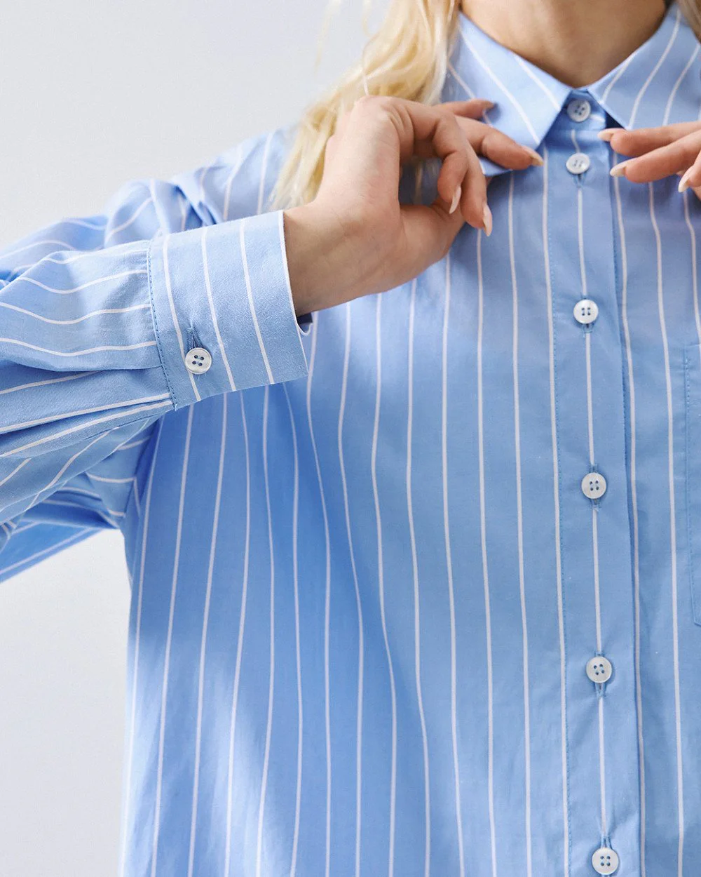 Striped long-sleeve shirt with a collar, chest patch pocket and front button fastening with buttoned cuffs.