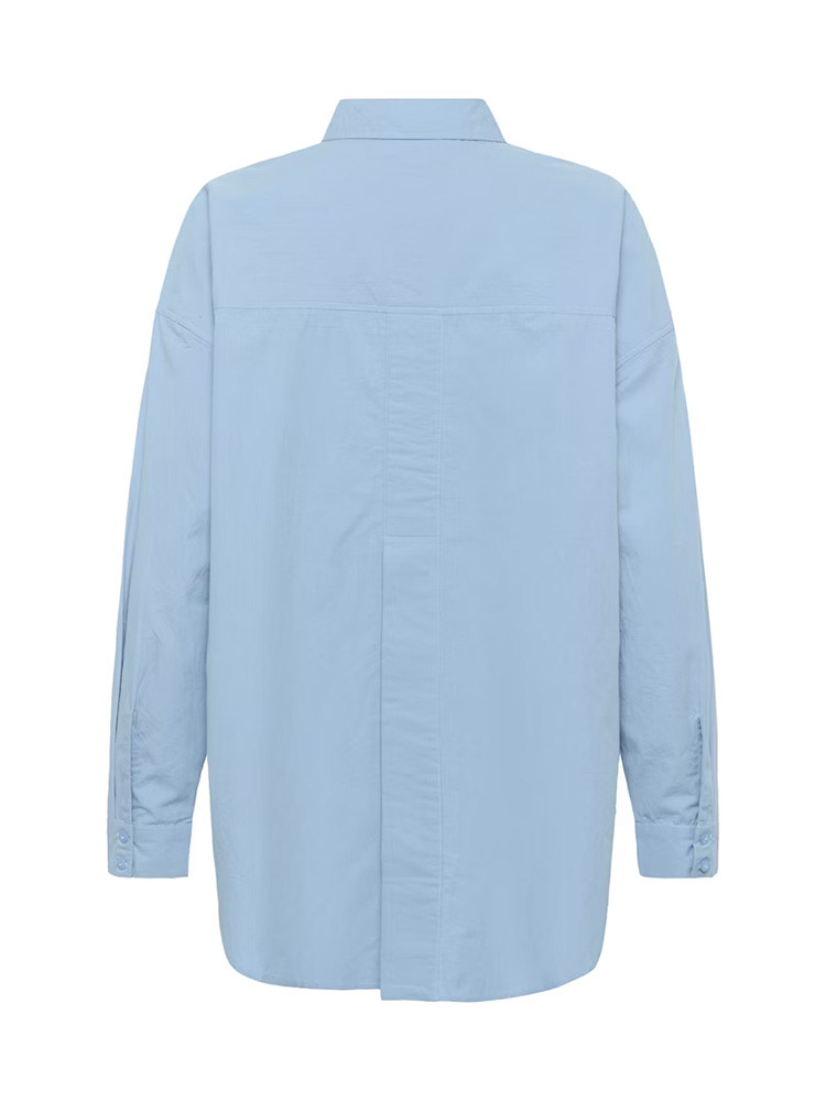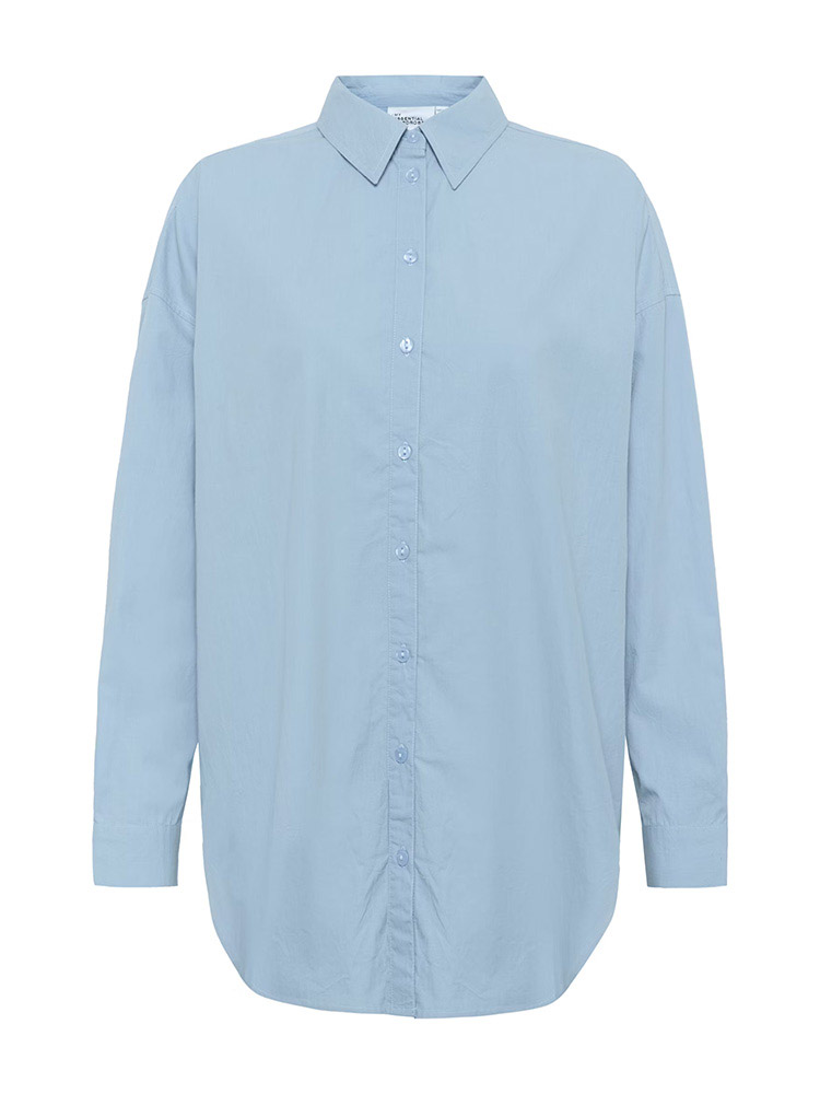 A timeless button-down shirt crafted from organic cotton. Designed from My Essential Wardrobe with a relaxed, boxy fit and a mid-thigh length, it combines comfort with effortless style. Perfect for both office looks and casual outfits.