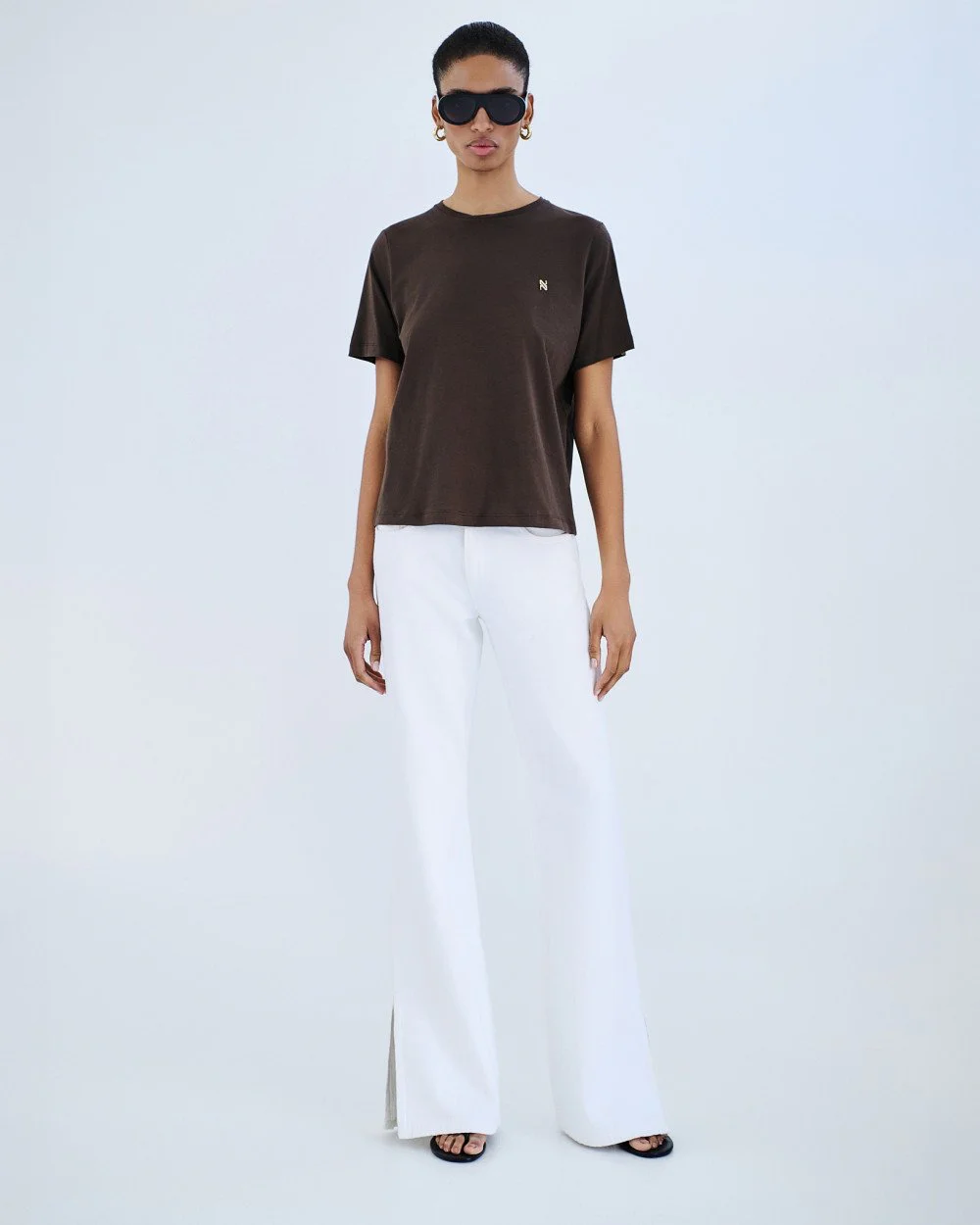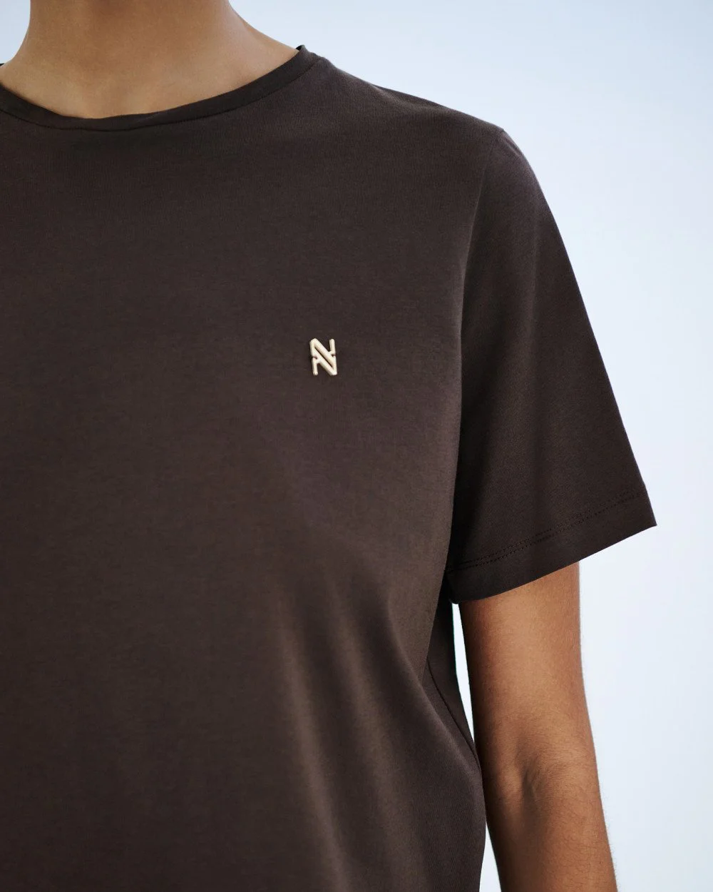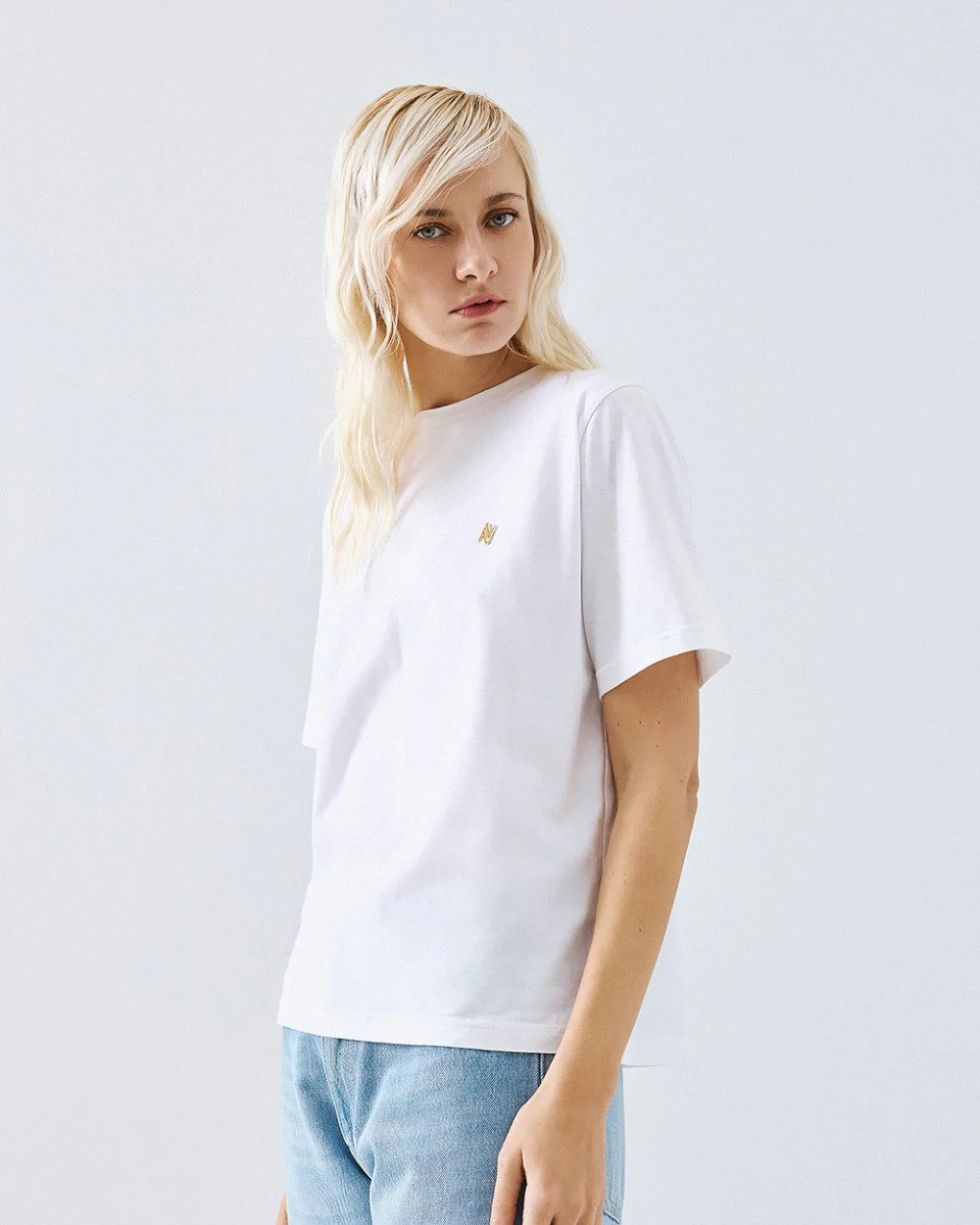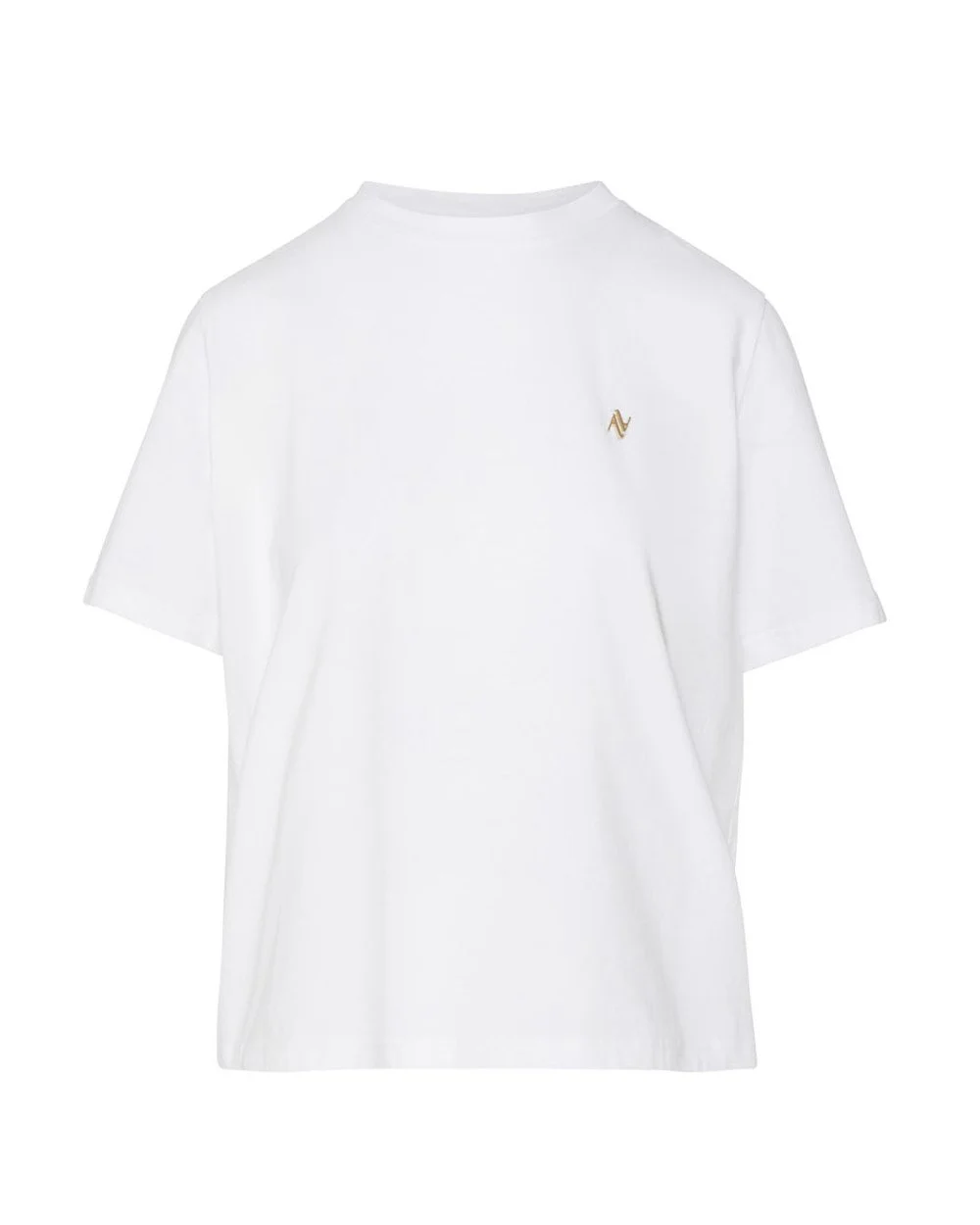 Cotton short-sleeved t-shirt with a round neckline, decorated with a metallic monogram at the front.