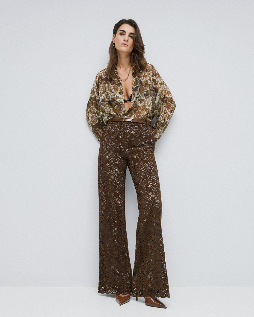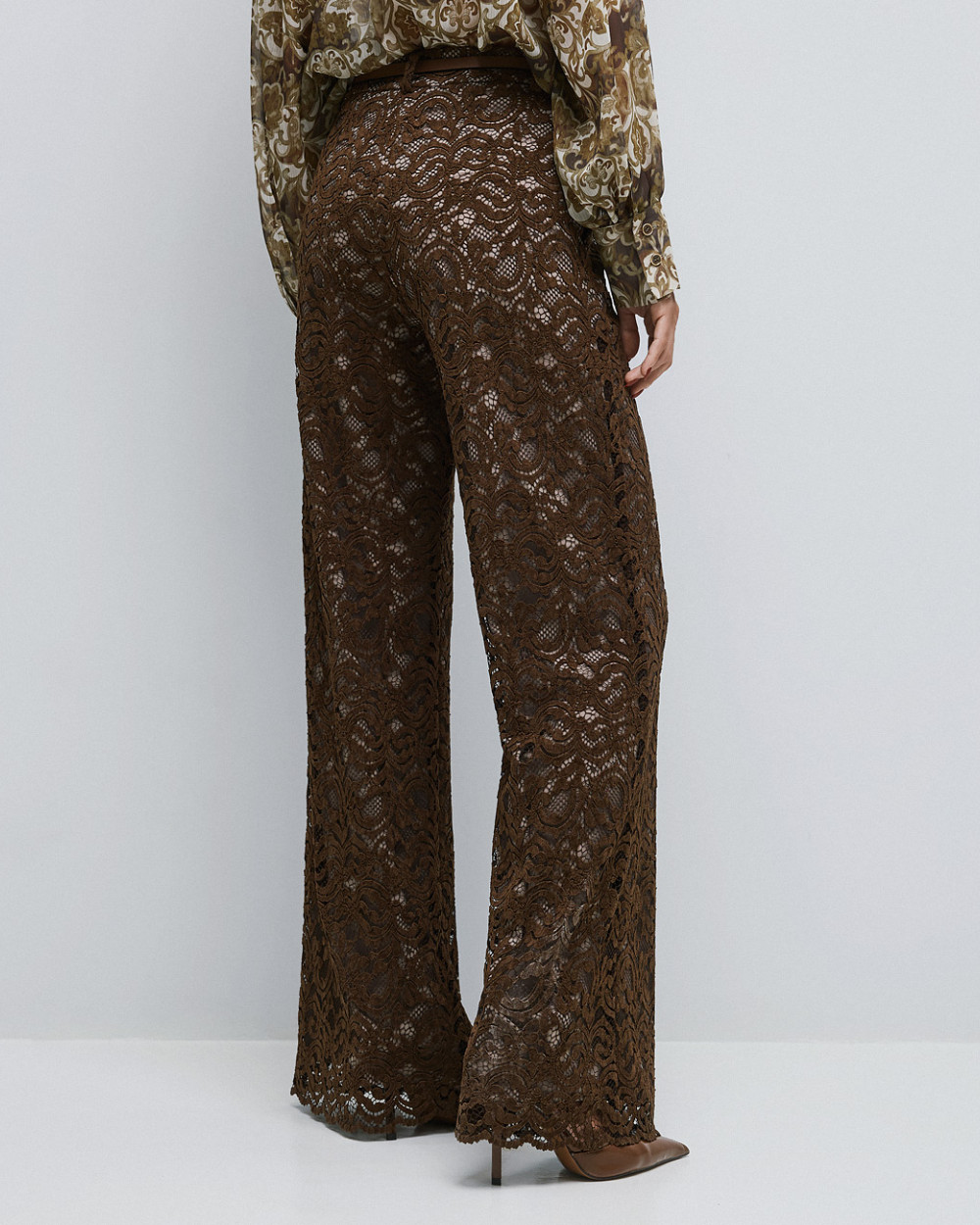 Elegant straight-leg pants crafted from delicate chenille lace, complete with a comfortable inner lining. Designed with classic tailoring details, they?re a refined choice for sophisticated formal looks.