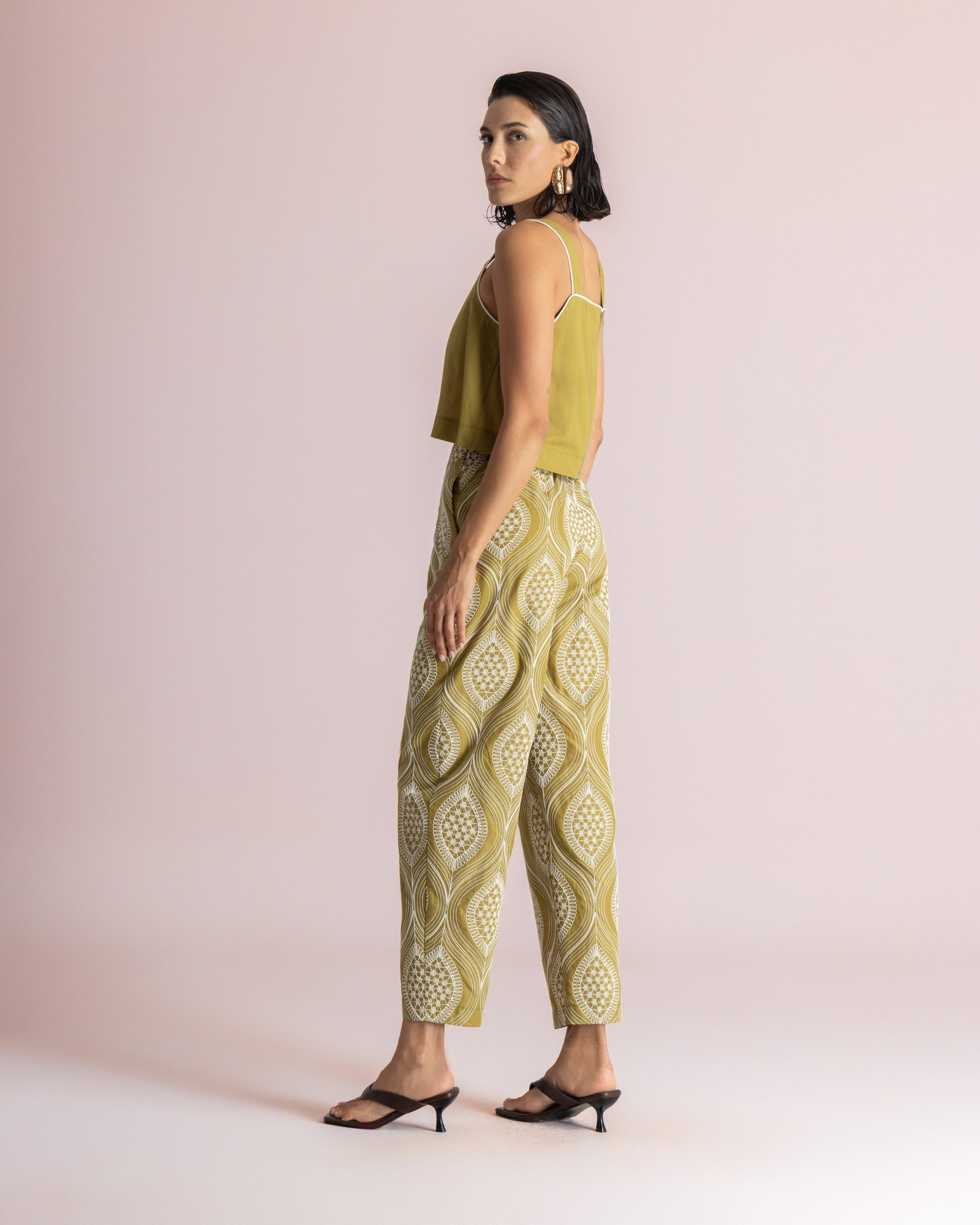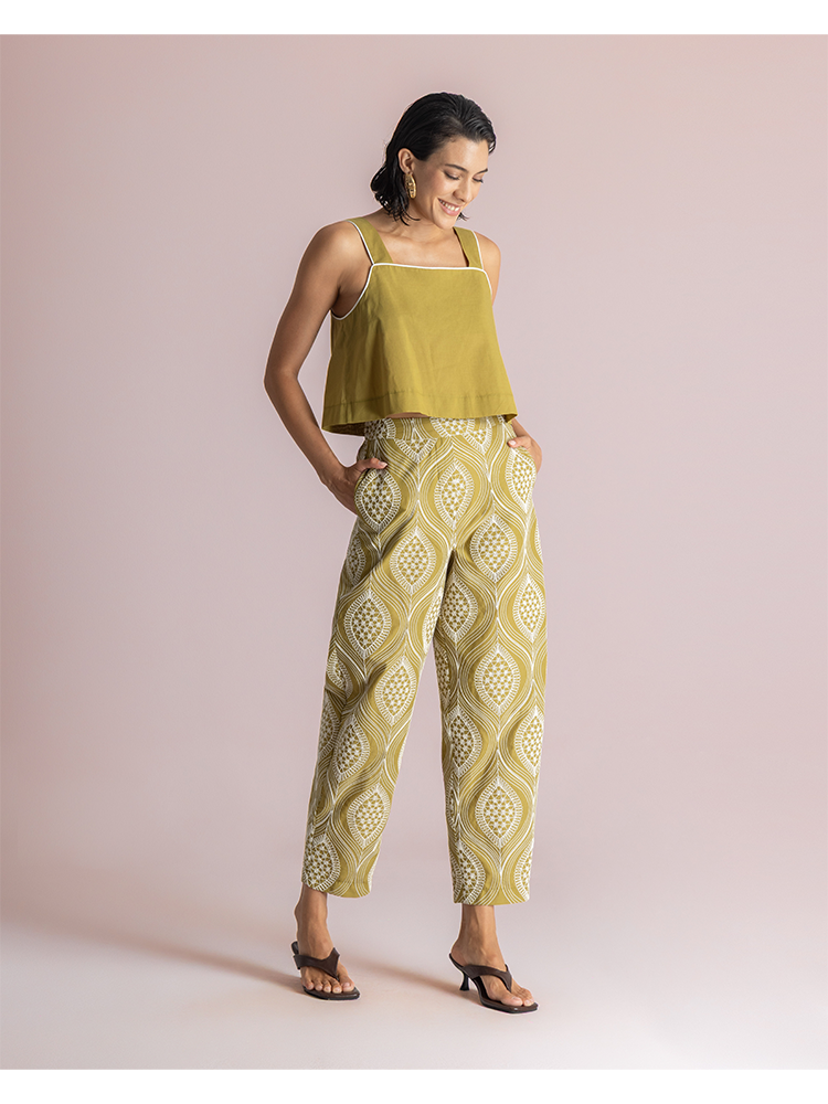 Cropped trousers with geometric print – Moutaki