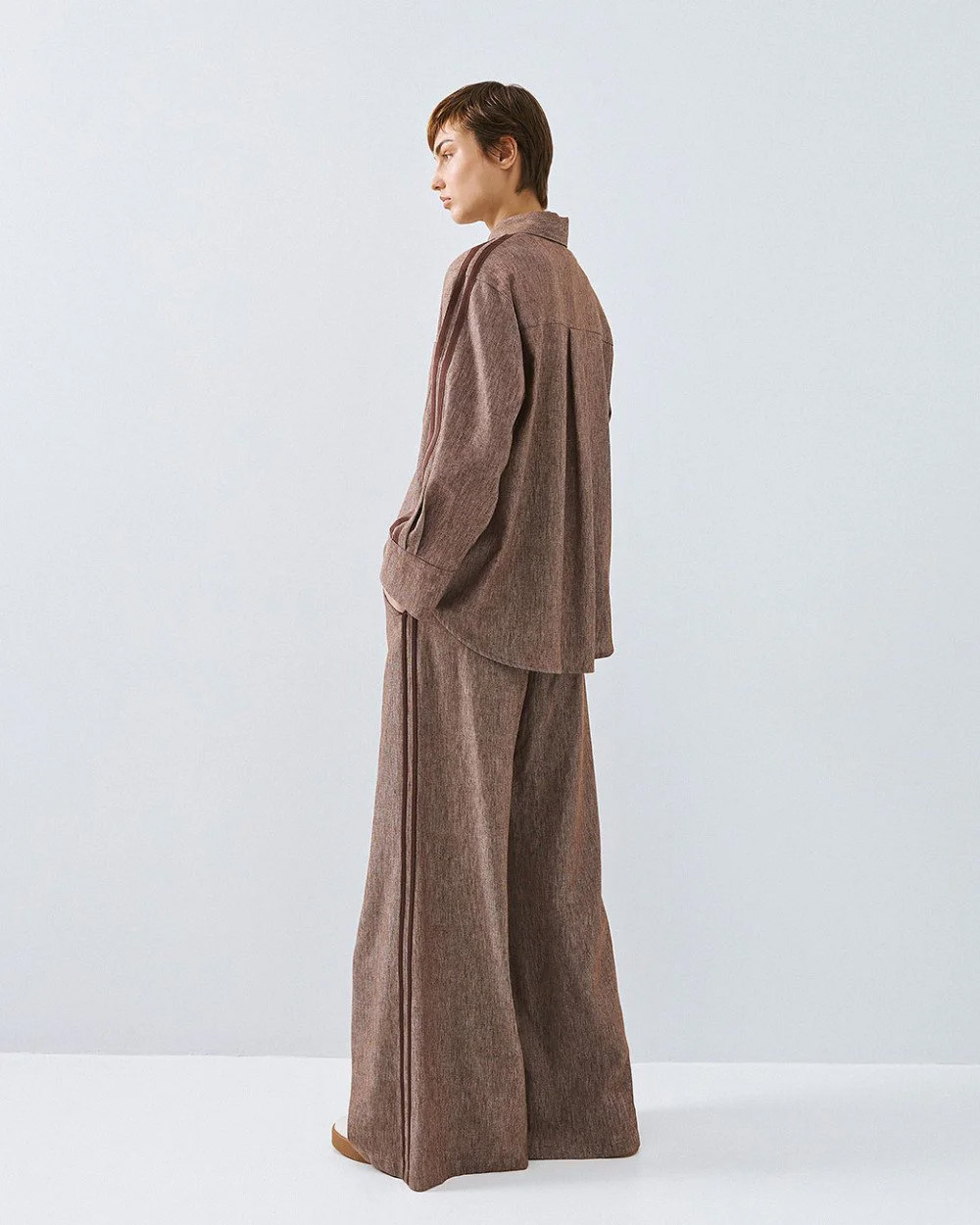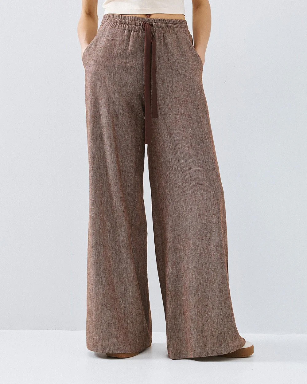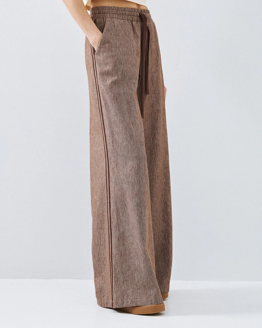 Wide-leg pants with an elasticated waistband and drawstrings. Feature side pockets and striped side bands. Pair it with the matching shirt from our collection.