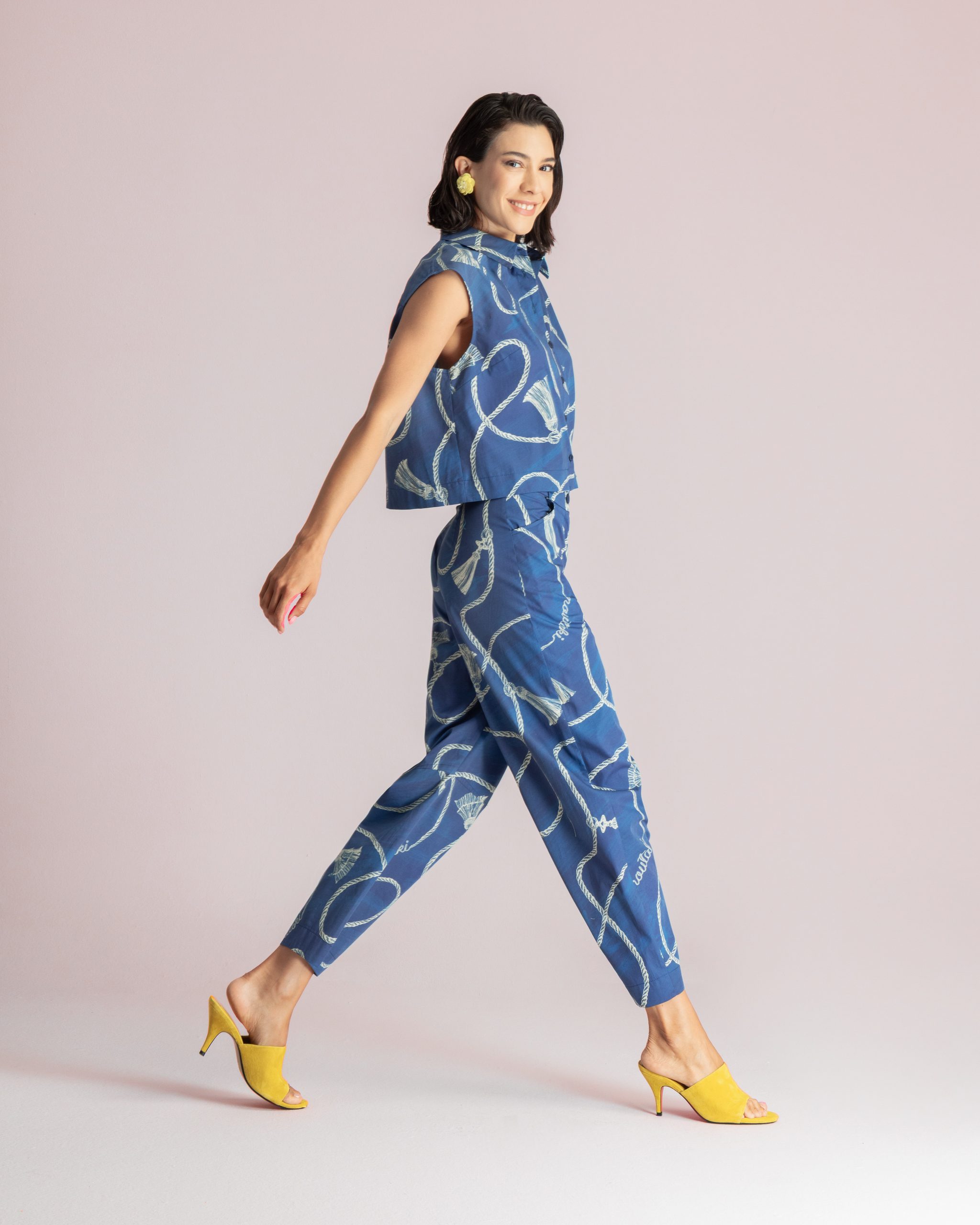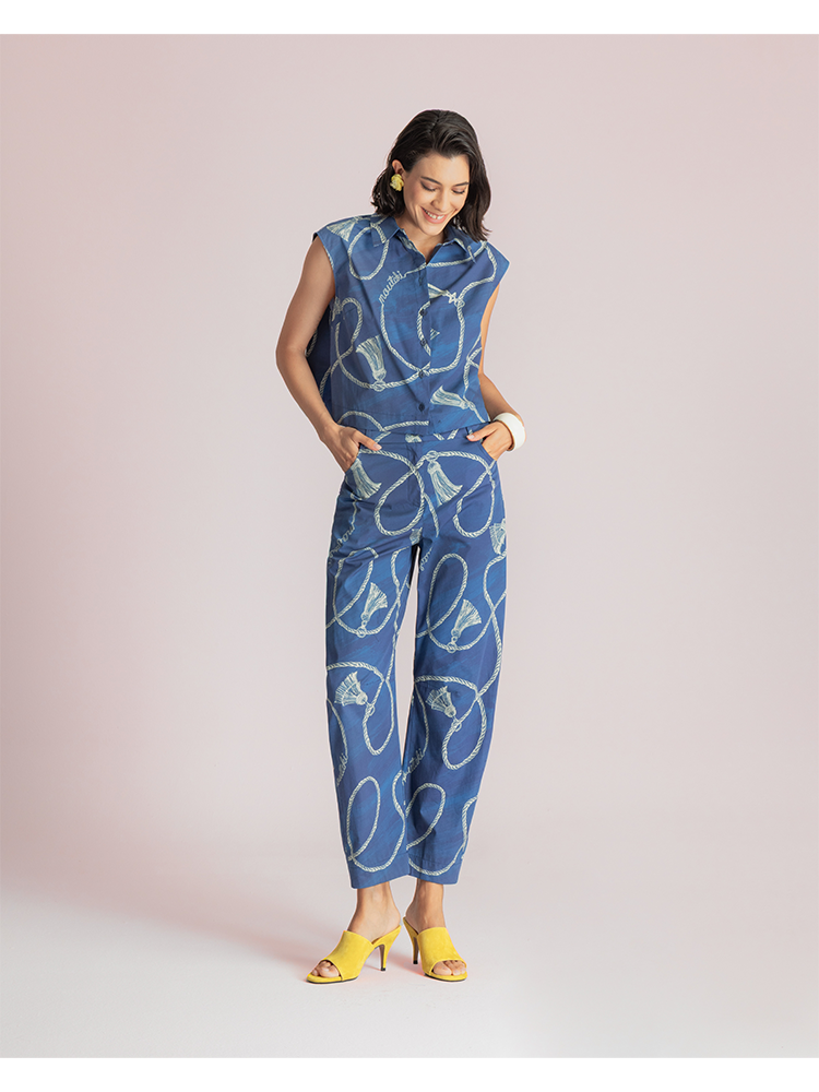 These statement trousers designed with a straight-leg silhouette, rope motif pattern and a mid-to-high rise, they offer both comfort and contemporary style.