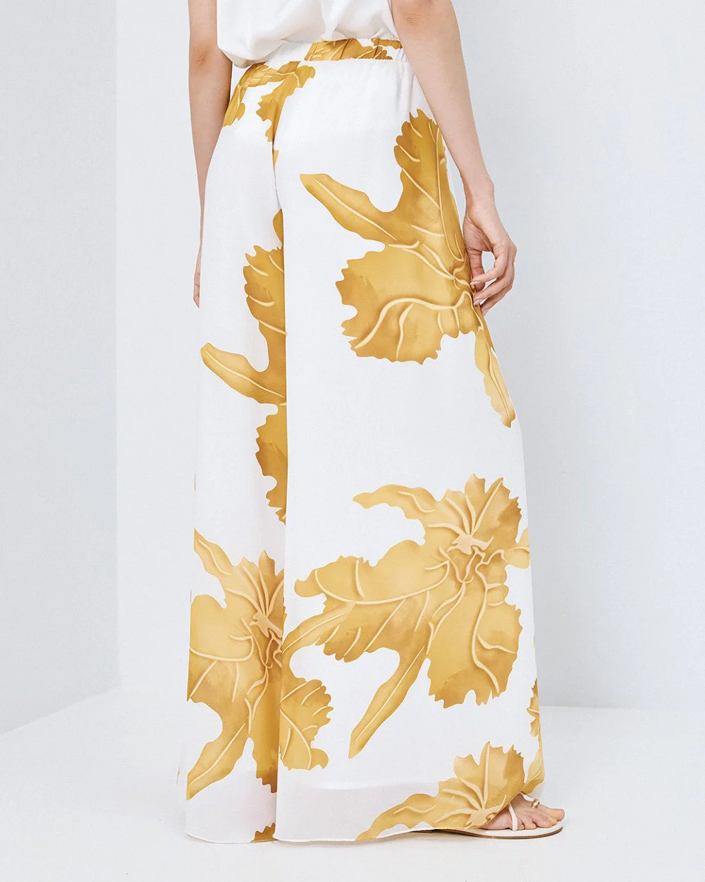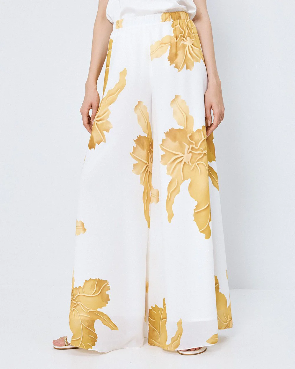Printed wide-leg pants with an elastic waistband and inner lining.