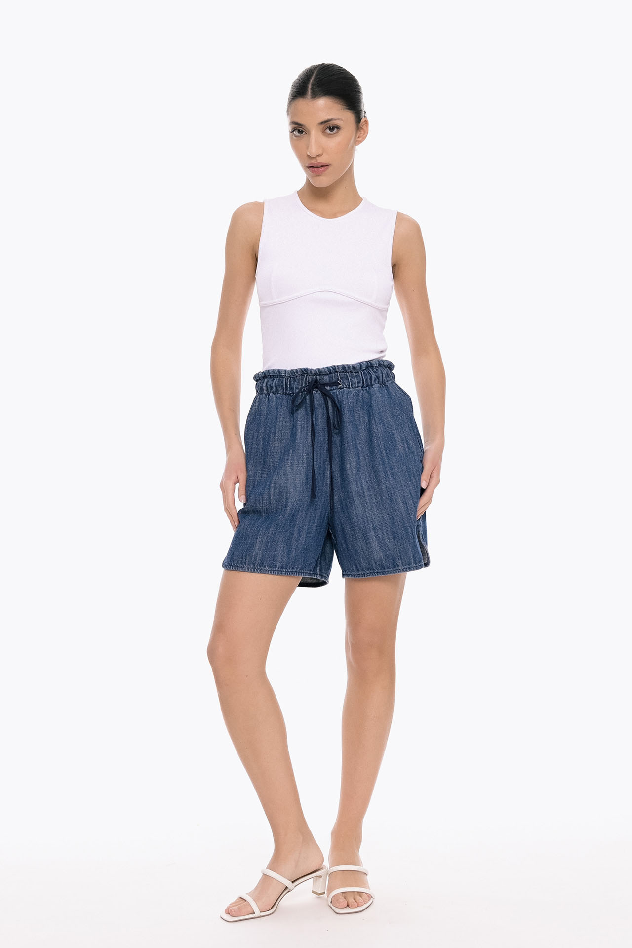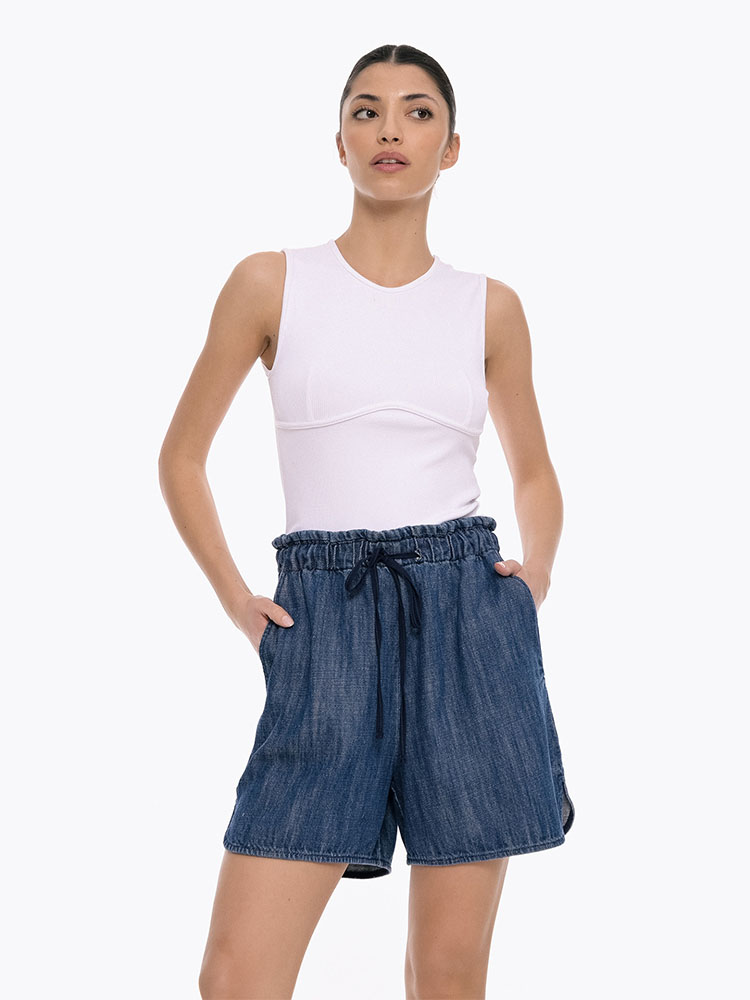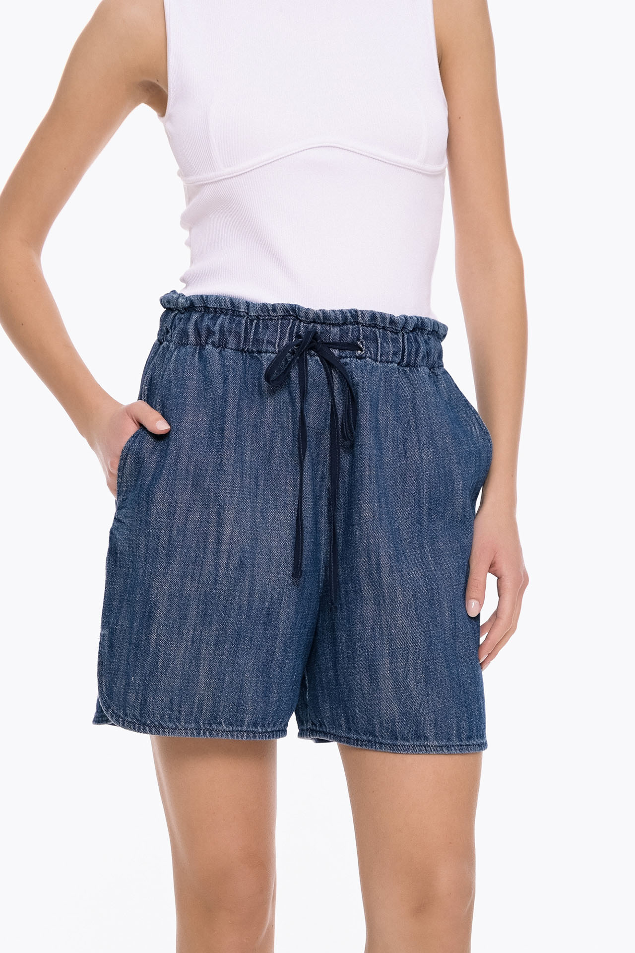 These casual denim shorts made from soft, lightweight denim, they feature a relaxed fit and practical pockets. The elasticated waistband with an adjustable drawstring ensures a secure and customizable fit.