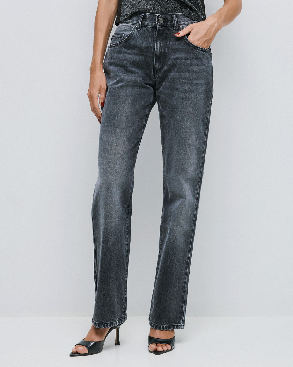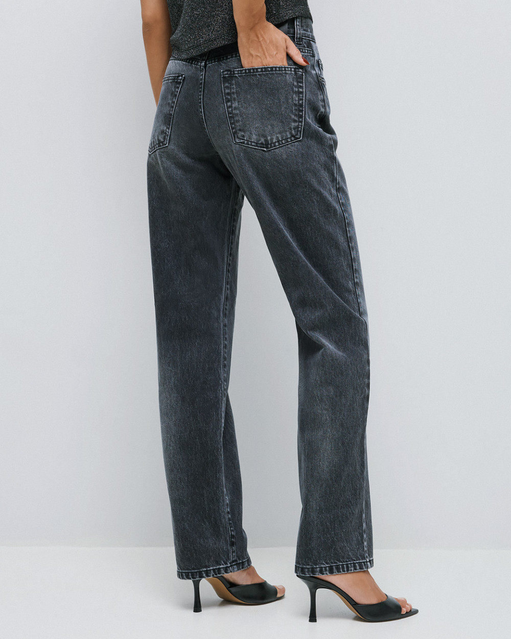 Low-rise straight-leg denim pants with a washed-out look. They feature side pockets and belt loops. An ideal choice to elevate your all-day looks.