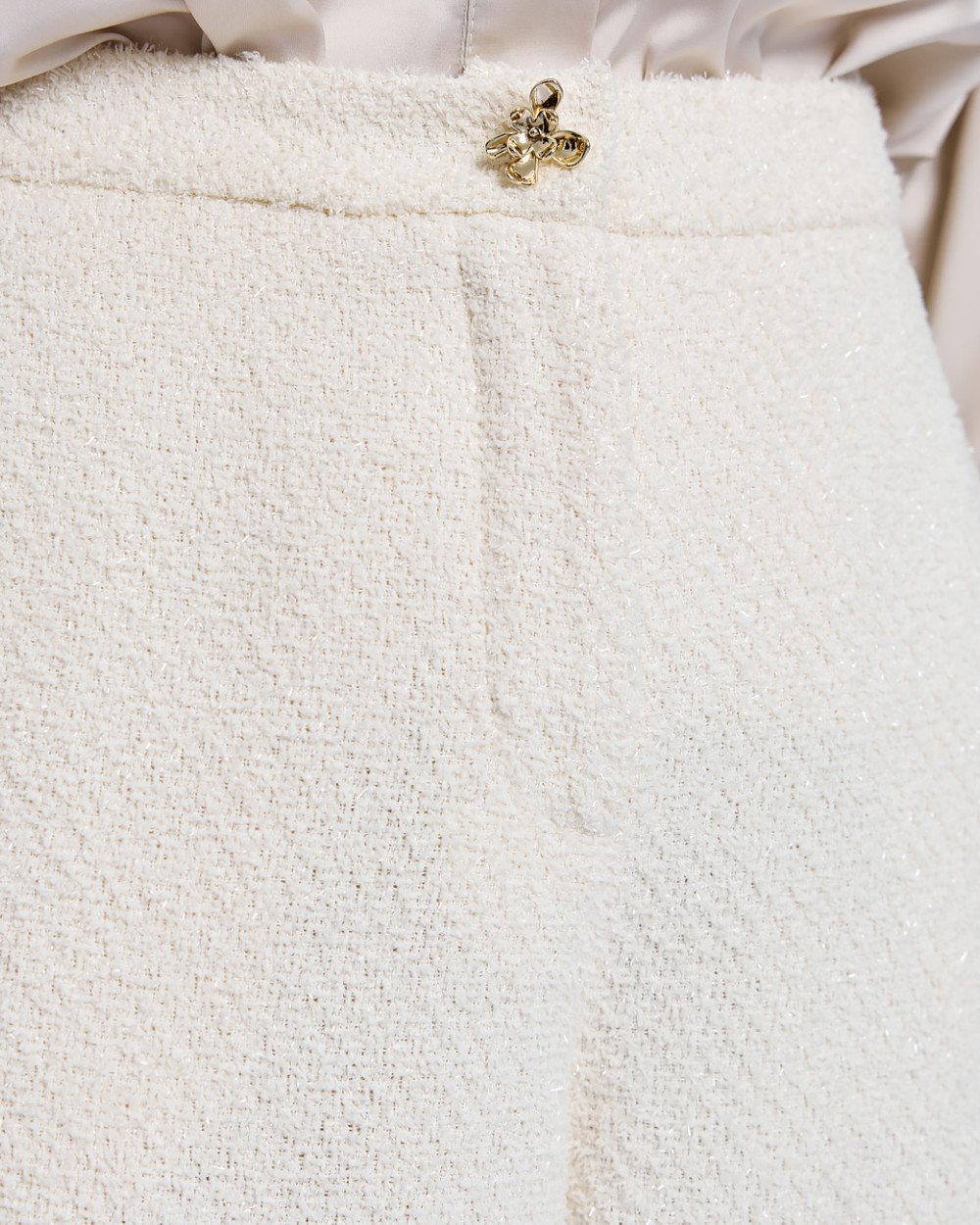 This trousers crafted from a softly textured fabric, they feature a flattering high waist and a relaxed wide-leg silhouette that elongates the figure. Perfect for both sophisticated daywear and evening looks.