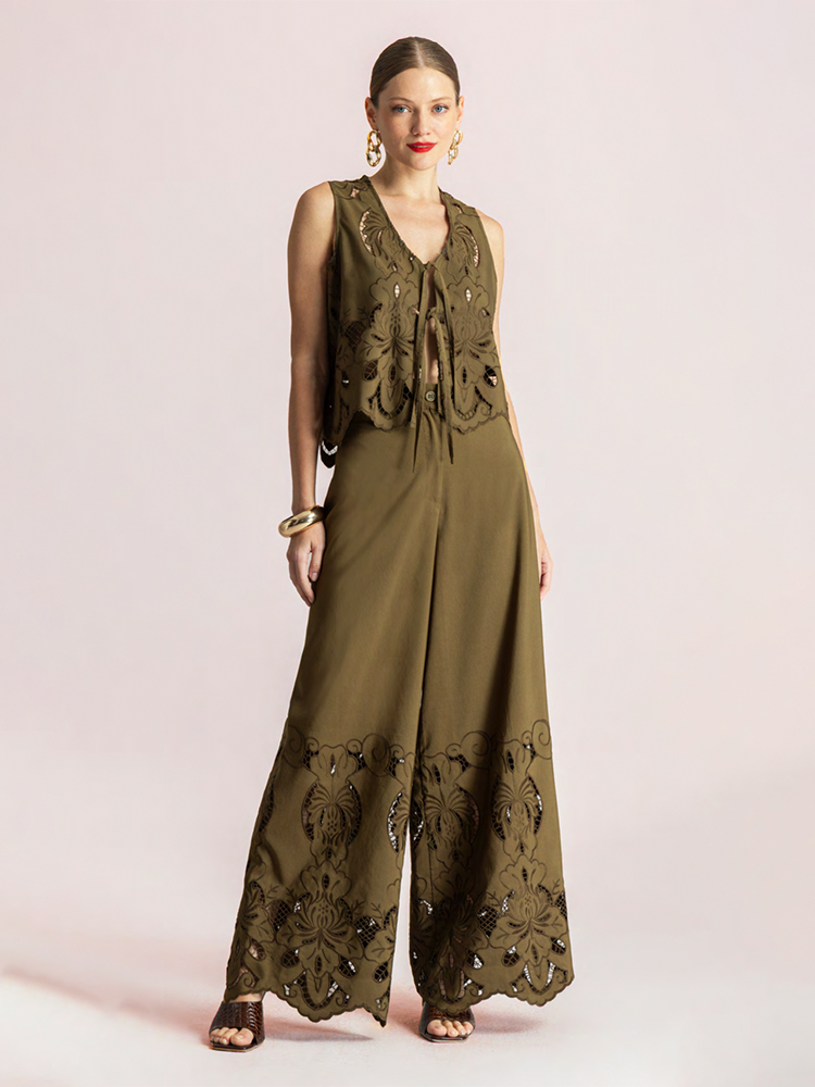 Wide-leg embroidered trousers – Moutaki