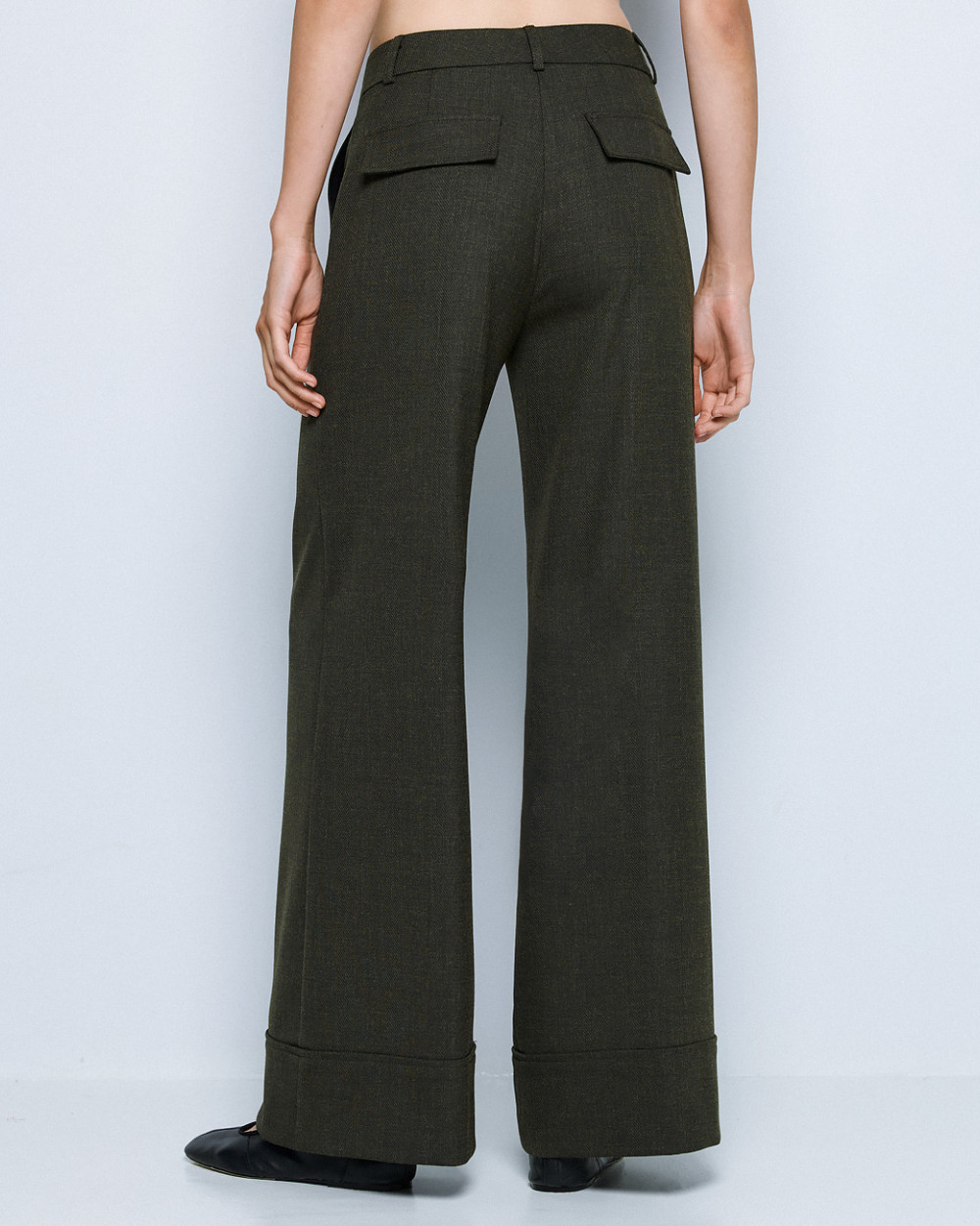 Wide-leg, high-waist pants with turn-up hemlines from Access Fashion. They feature side pockets and decorative flap pockets at the back. Pair them with the matching blazer from our collection for standout looks.