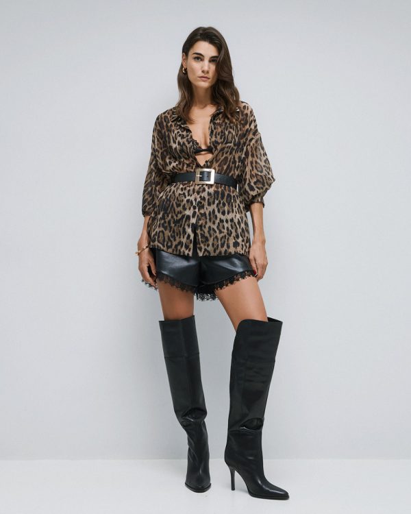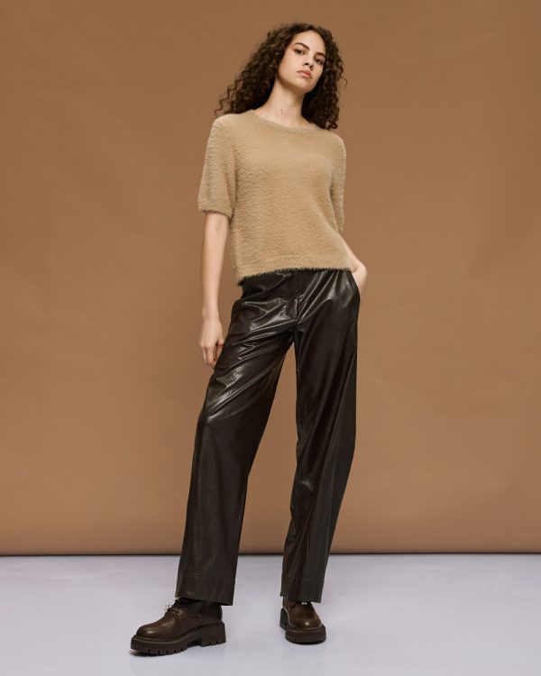 Knitted blouse with short sleeves and rhinestones – Access Fashion