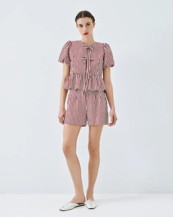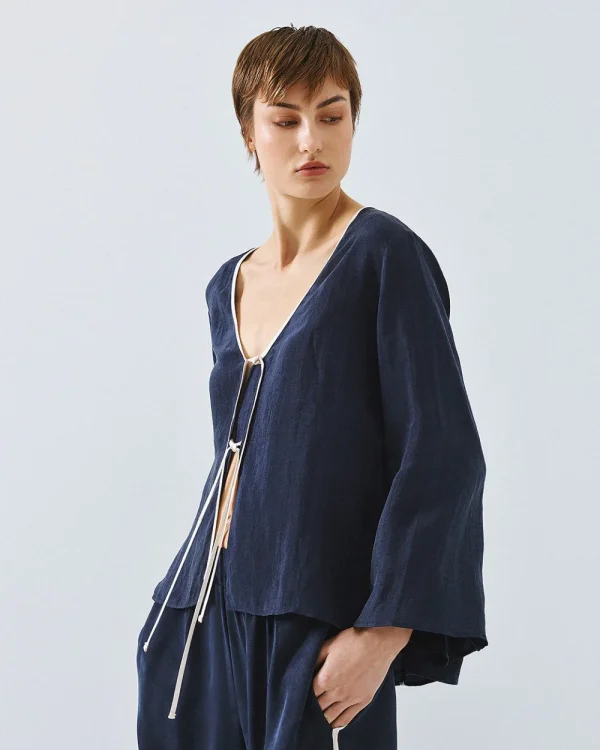 Blouse with trim detailing and tie-up cords – Access Fashion