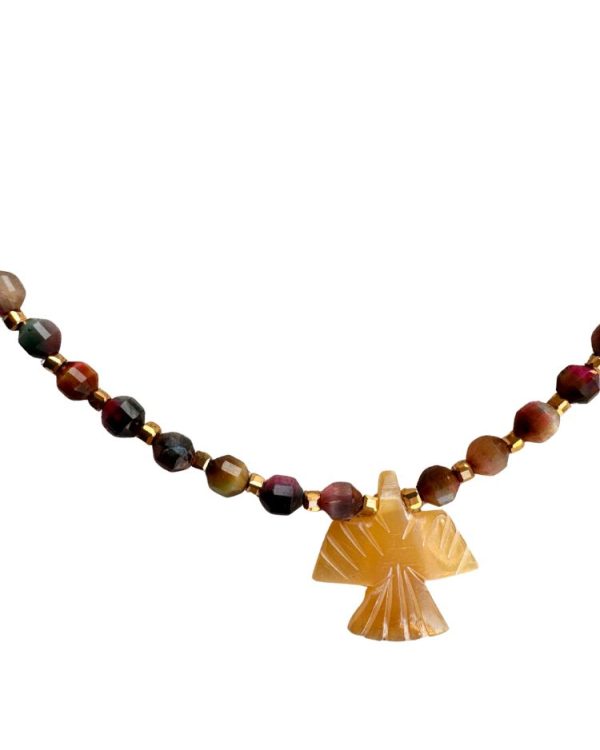 Cateye stone necklace with eagle pendant – Ifigenia Loukou