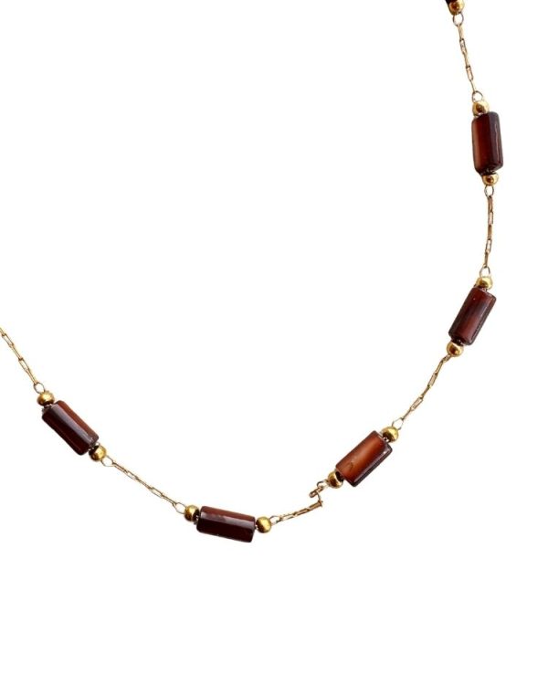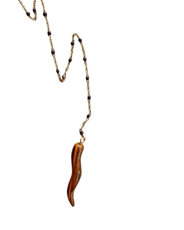 Tiger eye necklace with dangling chain and tiger eye tooth pendant – Ifigenia Loukou